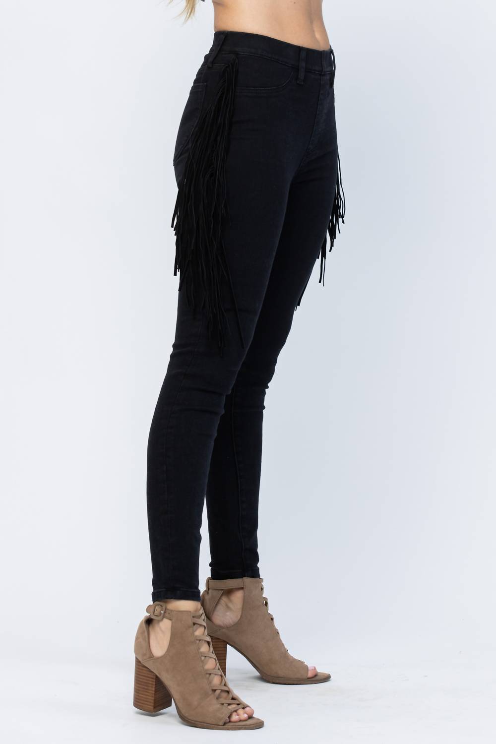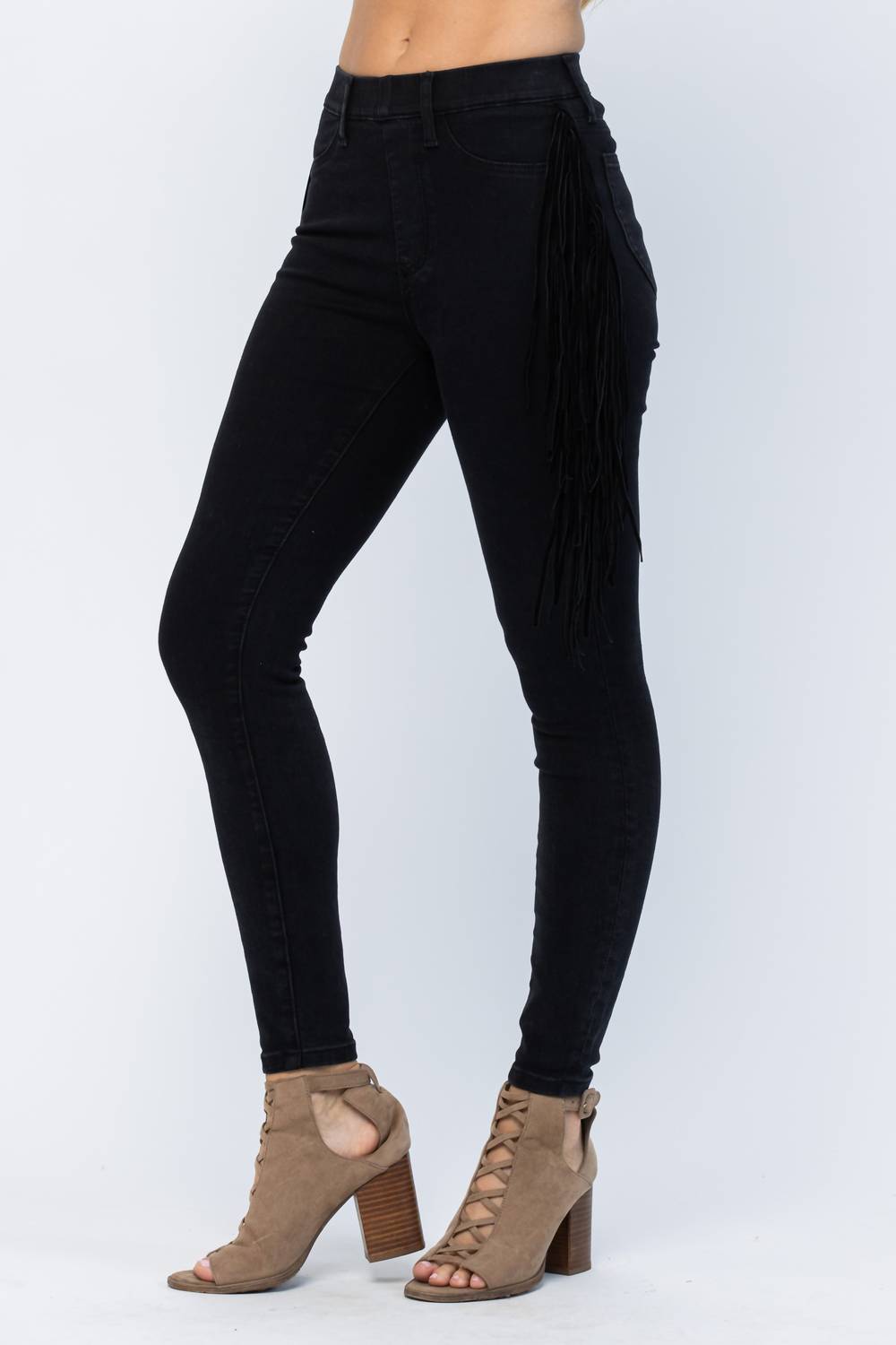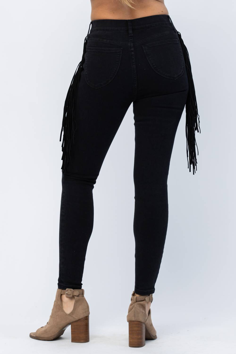 Judy Blue - High-rise Side Fringe Black Skinny Jegging Jeans