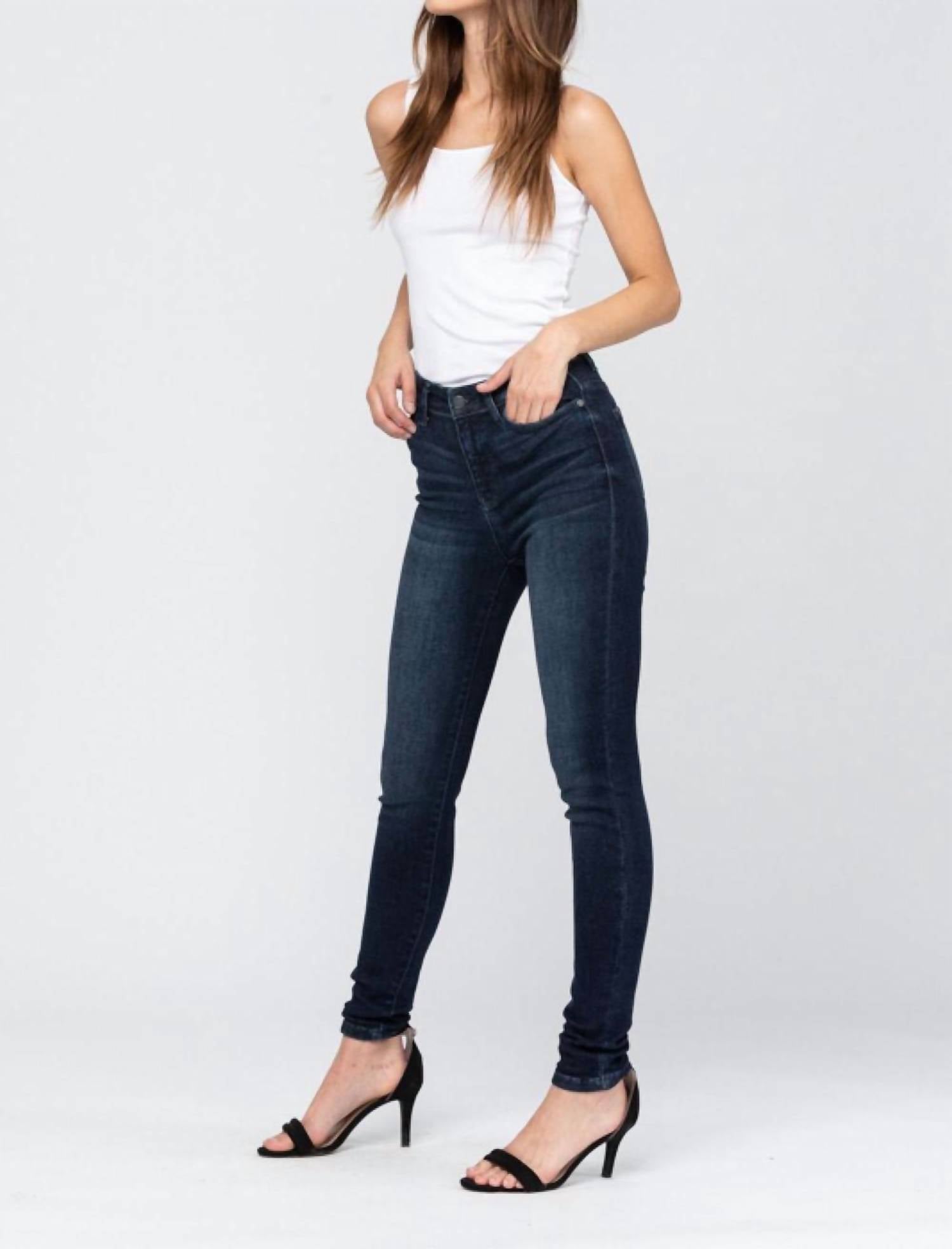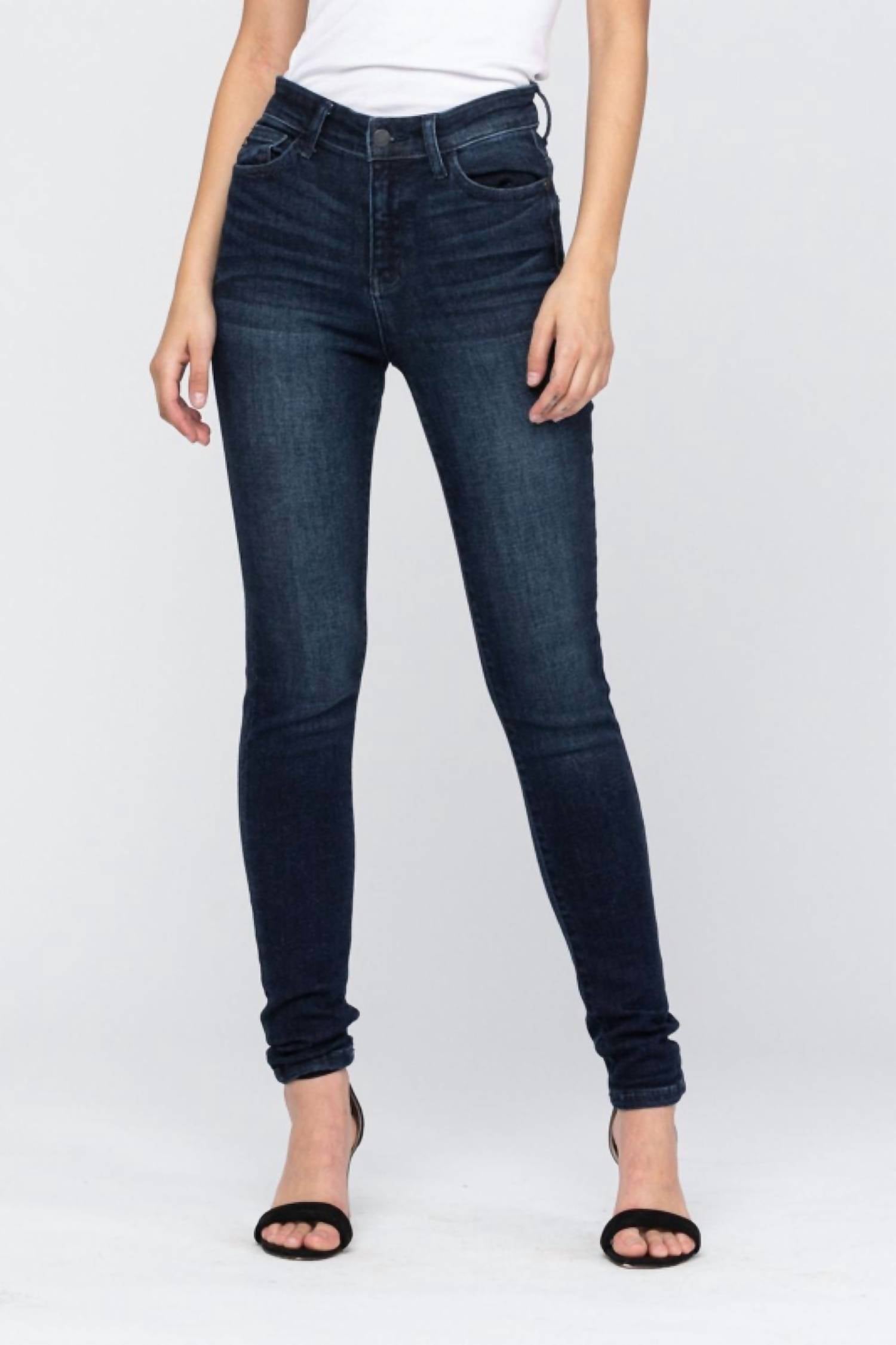 The perfect skinny jeans to wear with your favorite boots this season! Elevate your denim collection with the Judy Blue High Rise Skinny Jeans, crafted in a super dark solid color. Designed for a slimming silhouette, these jeans boast a high-rise fit with a front rise of 11.5 inches and an inseam of 29.5 inches. Made from a comfortable cotton blend with 93% Cotton, 6% Polyester, and 1% Spandex, they ensure flexibility and comfort throughout the day. They feature a convenient button closure and practical pockets, perfect for workwear or any holiday gathering. Care instructions include machine washing and low tumble drying to maintain their premium quality.