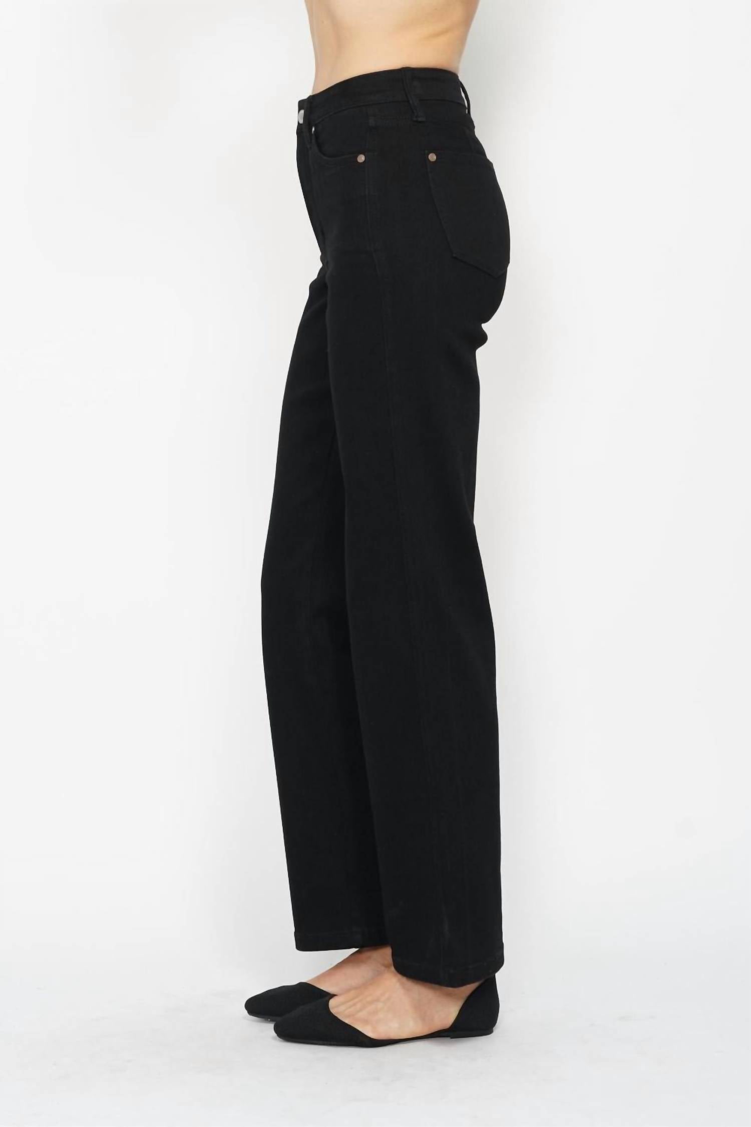 Judy Blue presents the High Waist Tummy Control Classic Straight Denim Jeans, a sleek and versatile choice in timeless black. With a high-rise waist, these jeans feature a comforting tummy control panel for a flattering fit. The material comprises a cotton blend designed for lasting comfort and flexibility. Care: Machine wash and tumble dry for easy maintenance. Available in plus sizes with measurements including a rise of 12.25 inches and a 32-inch inseam. 69% Cotton, 23% Polyester, 7% Rayon, 1% Spandex.