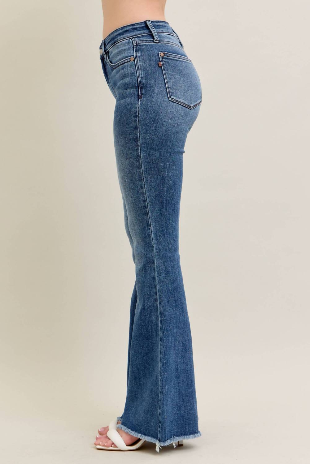 Judy Blue - Mid Rise Distressed And Fray Hem Flare Jeans