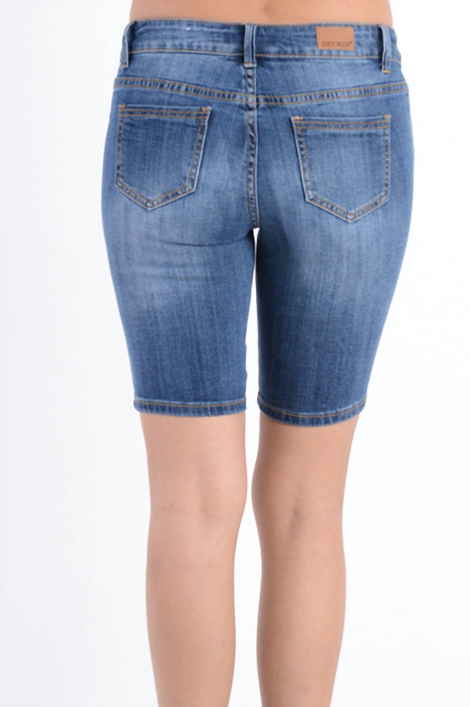 Embrace the perfect blend of comfort and style with these fashionable women's Bermuda shorts, expertly designed to offer a flattering fit and versatile wear. Experience the perfect blend of style and comfort with the Women's Bermuda Short by Judy Blue in medium wash. These shorts offer ultimate flexibility with their 98% cotton and 2% spandex composition, creating a flattering cotton blend. Designed for versatility, they feature a convenient button closure and practical pockets for on-the-go ease. Care for them effortlessly with simple machine wash instructions, making them a staple for any spring or summer travel wardrobe.