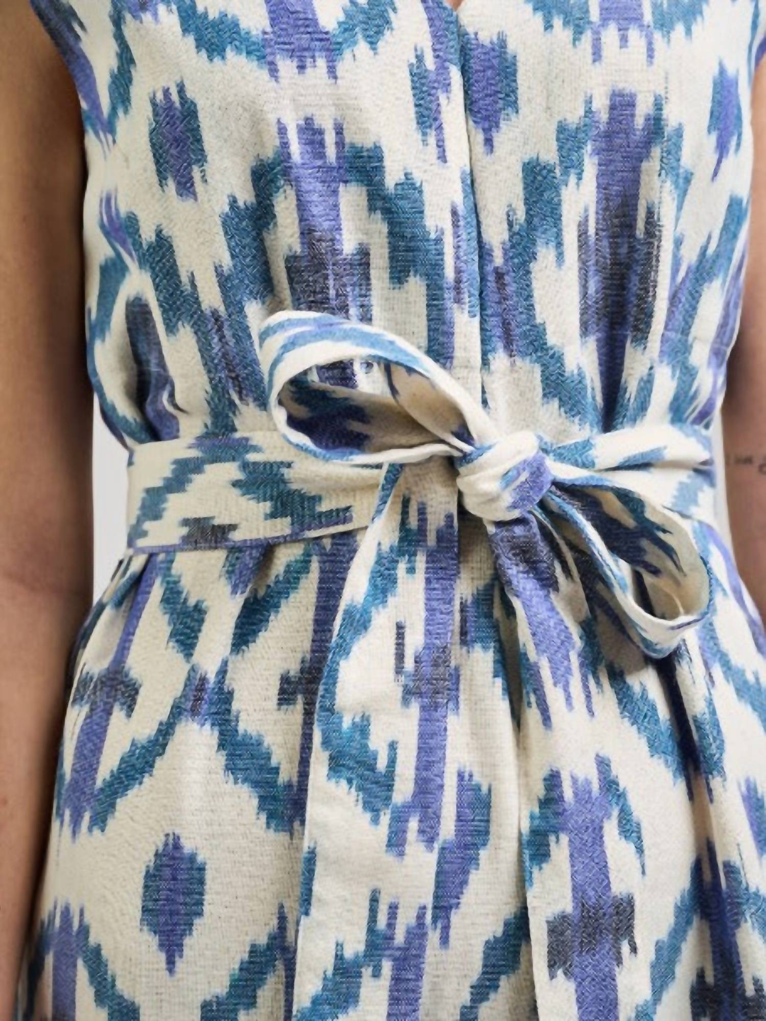 It doesn't take much for this one piece to look effortlessly cool. Add some statement jewelry to dress it up, or throw on some sneakers for a more casual vibe. Meet the Jana Jumpsuit by Mata Traders, an elegant statement piece in Seashore Ikat perfect for any occasion. This relaxed-fit jumpsuit features a wide-leg design with a total length of 58" and an inseam of 28.5". Crafted from 100% cotton, it boasts a hand tie-dyed and handwoven ikat pattern, complete with a hidden zip closure at the back. Care for it effortlessly with machine wash instructions, and enjoy the versatility of the removable self-tie belt. Made fair trade in India, this jumpsuit is your ideal companion for a boho-chic vibe.