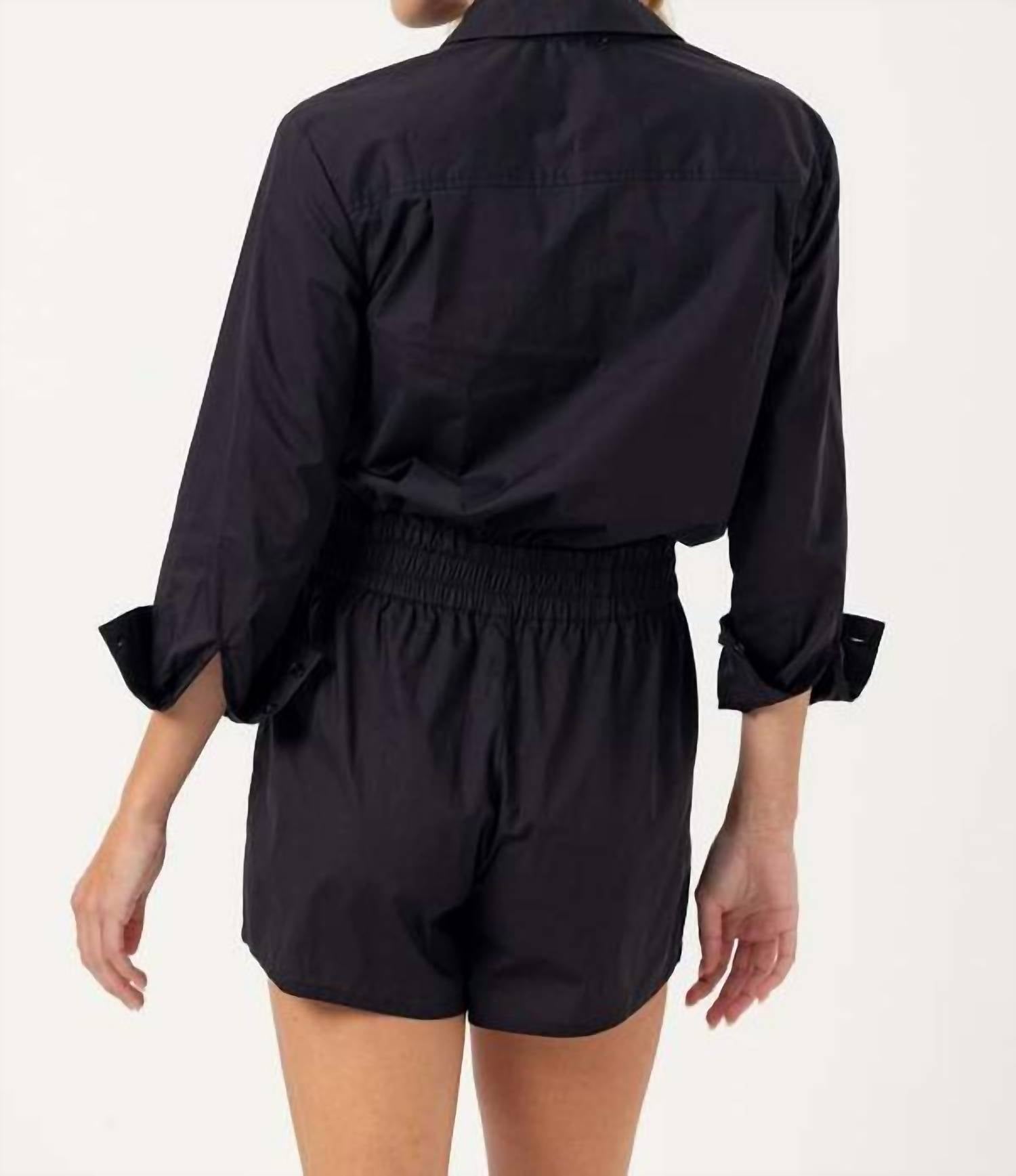 The perfect outfit choice when you you need something quick to throw on and still want to look efforlessly cool. Discover the charm of the Lottie Romper by Sundays, a playful addition to your wardrobe in a versatile black hue. Designed with a relaxed fit and straight leg style, this romper is crafted from 100% cotton poplin for all-day comfort. It features a flattering elastic waist and convenient button closure. Care is simple with machine wash cold and line dry instructions, perfect for effortless maintenance.