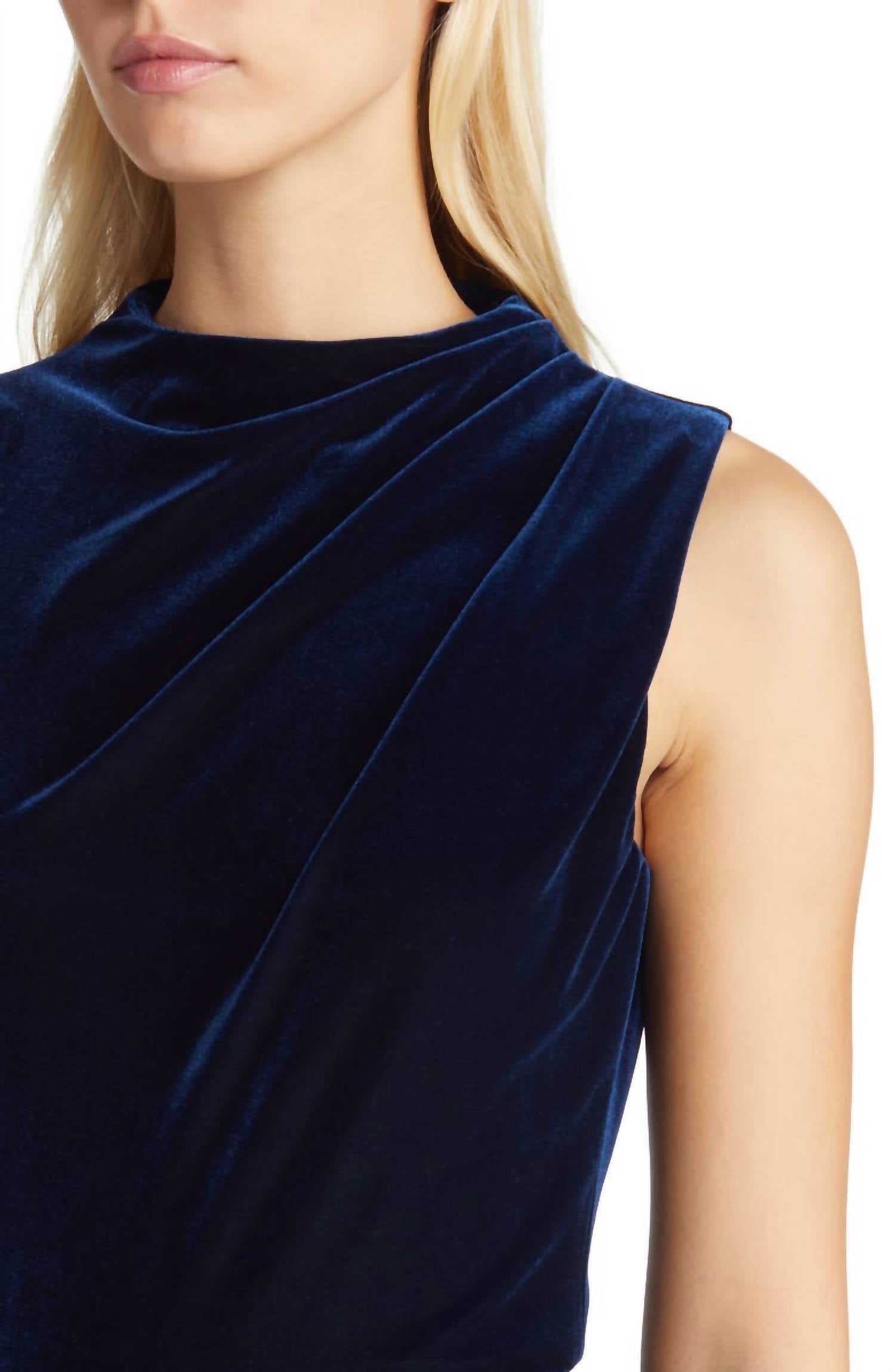 The perfect outfit choice when you you need something quick to throw on and still want to look efforlessly cool. Elevate your formal wardrobe with the Corrine Velvet Wide Leg Jumpsuit by Black Halo, a stunning choice in a deep wave hue. This sleeveless, textured jumpsuit features a mock collar and is crafted from luxurious polyamide velvet, complete with a sleek 64-inch length. It includes a hidden back center zipper for a seamless look and a comfortable pull-on closure. For care, please dry clean this elegant piece to maintain its sophisticated charm.