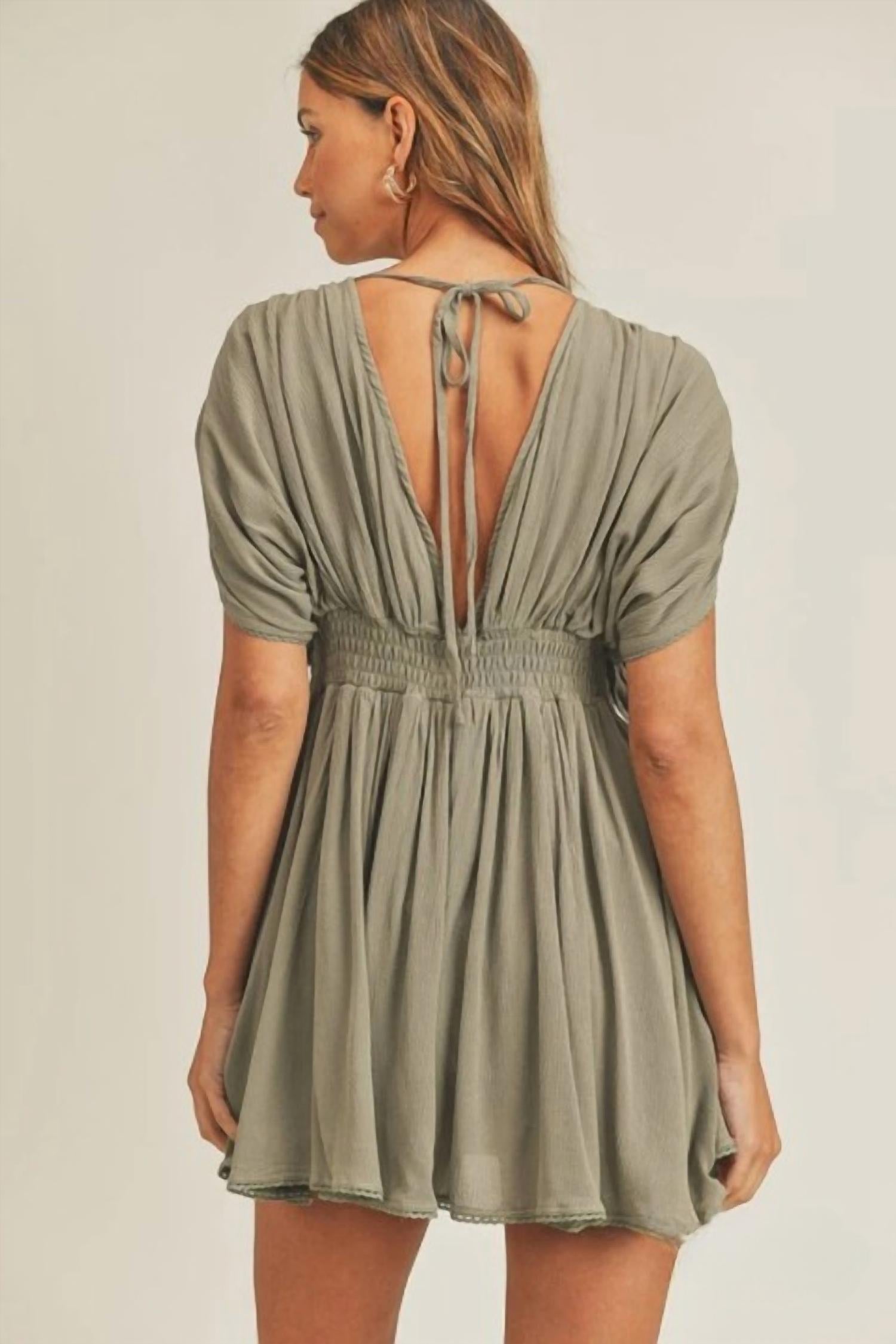 It doesn't take much for this one piece to look effortlessly cool. Add some statement jewelry to dress it up, or throw on some sneakers for a more casual vibe. The Vera Drop Shoulders & Flare Short Romper by MABLE in olive is an exquisite blend of chic design and feminine elegance. This solid-colored piece, crafted from 100% rayon, is beautifully accented with delicate lace crochet details on the sleeves, offering a touch of sophistication. Made in an imported facility, its lined interior—100% cotton—ensures comfort and confidence throughout the day. Providing effortless style, this romper requires hand washing and a gentle line dry to maintain its quality, with no closure for an easy, slip-on convenience.