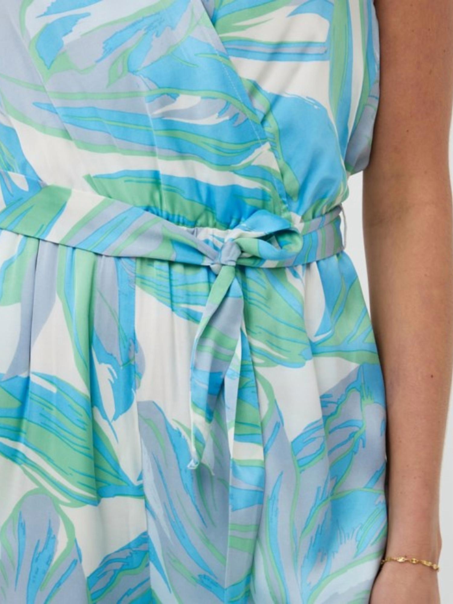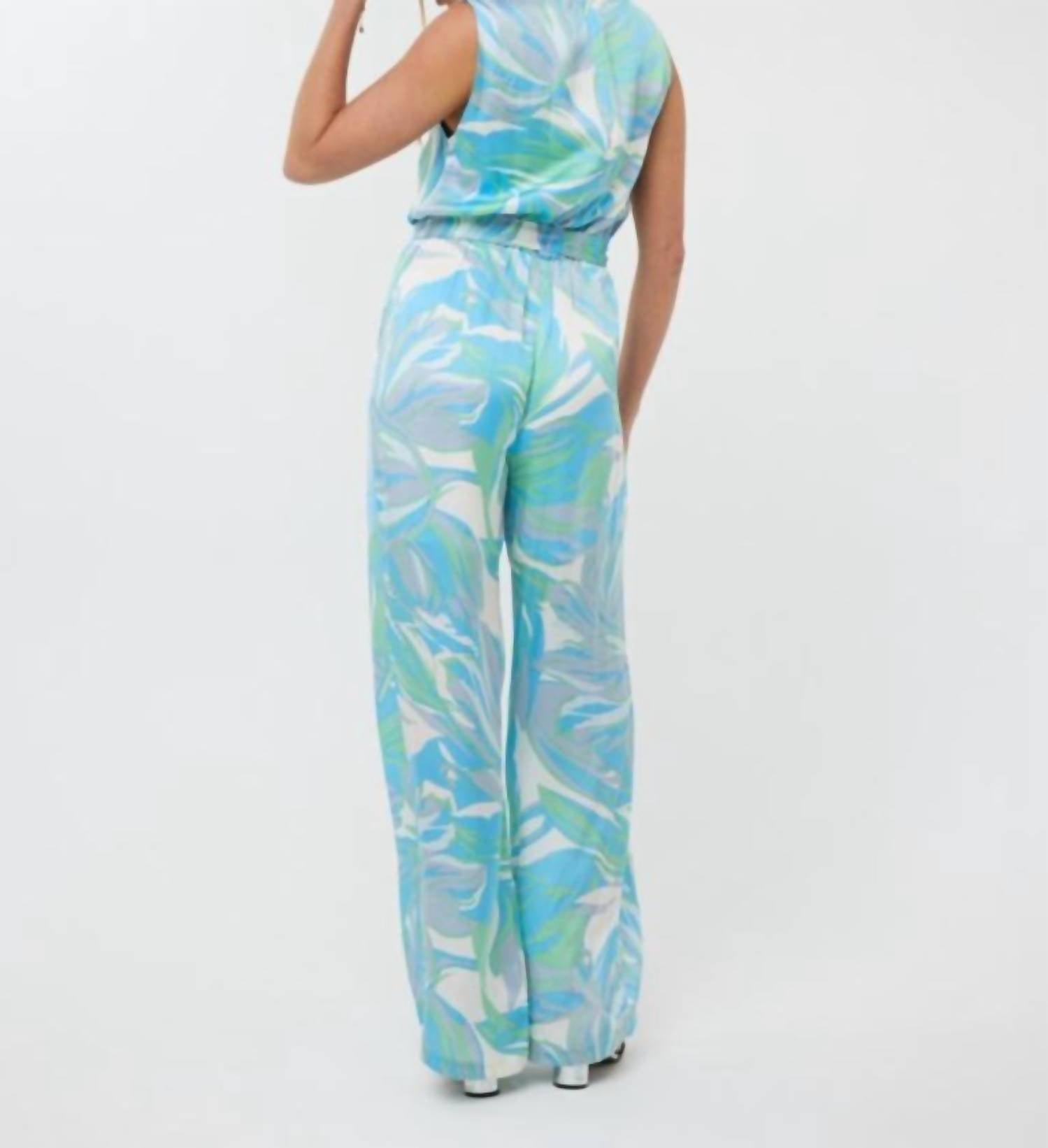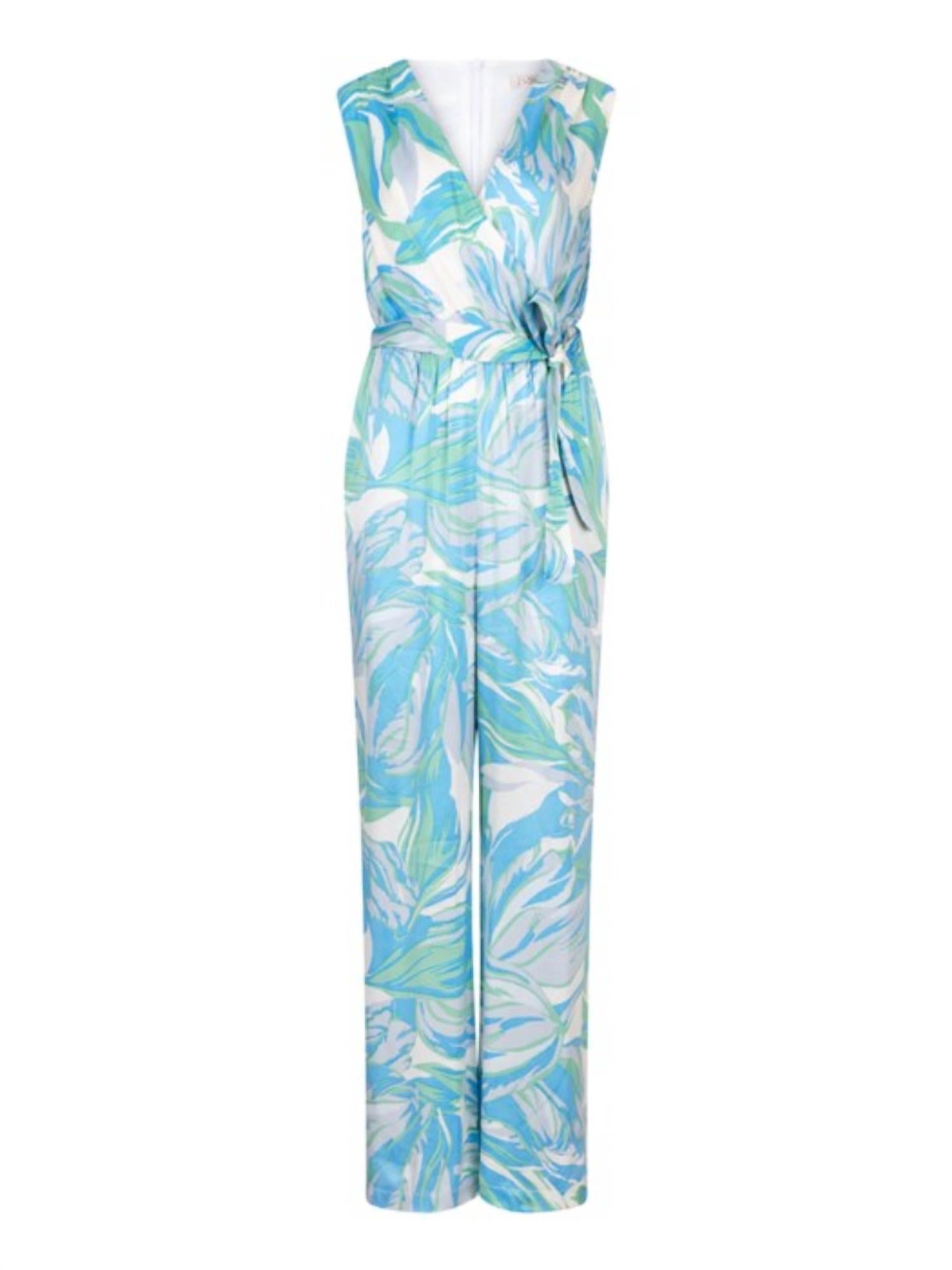 The perfect outfit choice when you you need something quick to throw on and still want to look efforlessly cool. Experience vibrant style with the Electric Waves Jumpsuit by ESQUALO, a show-stopping piece in light blue. This sleeveless jumpsuit features a relaxed fit with wide legs and a tie closure for a touch of sophistication. Crafted with a shell of 55% Viscose and 45% Rayon, and a 100% Rayon lining, it showcases a captivating floral pattern. Care: Machine wash and line dry for effortless maintenance.