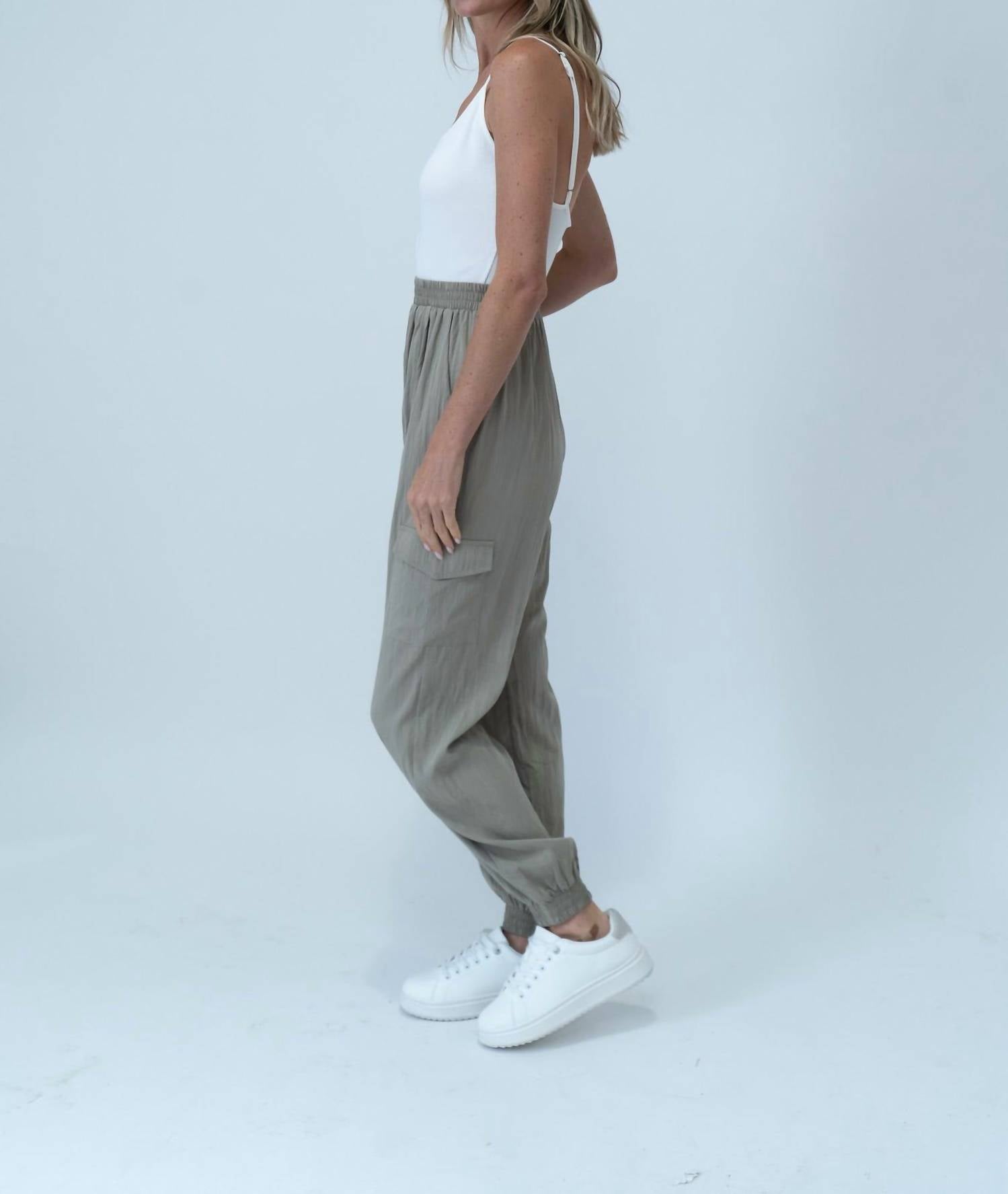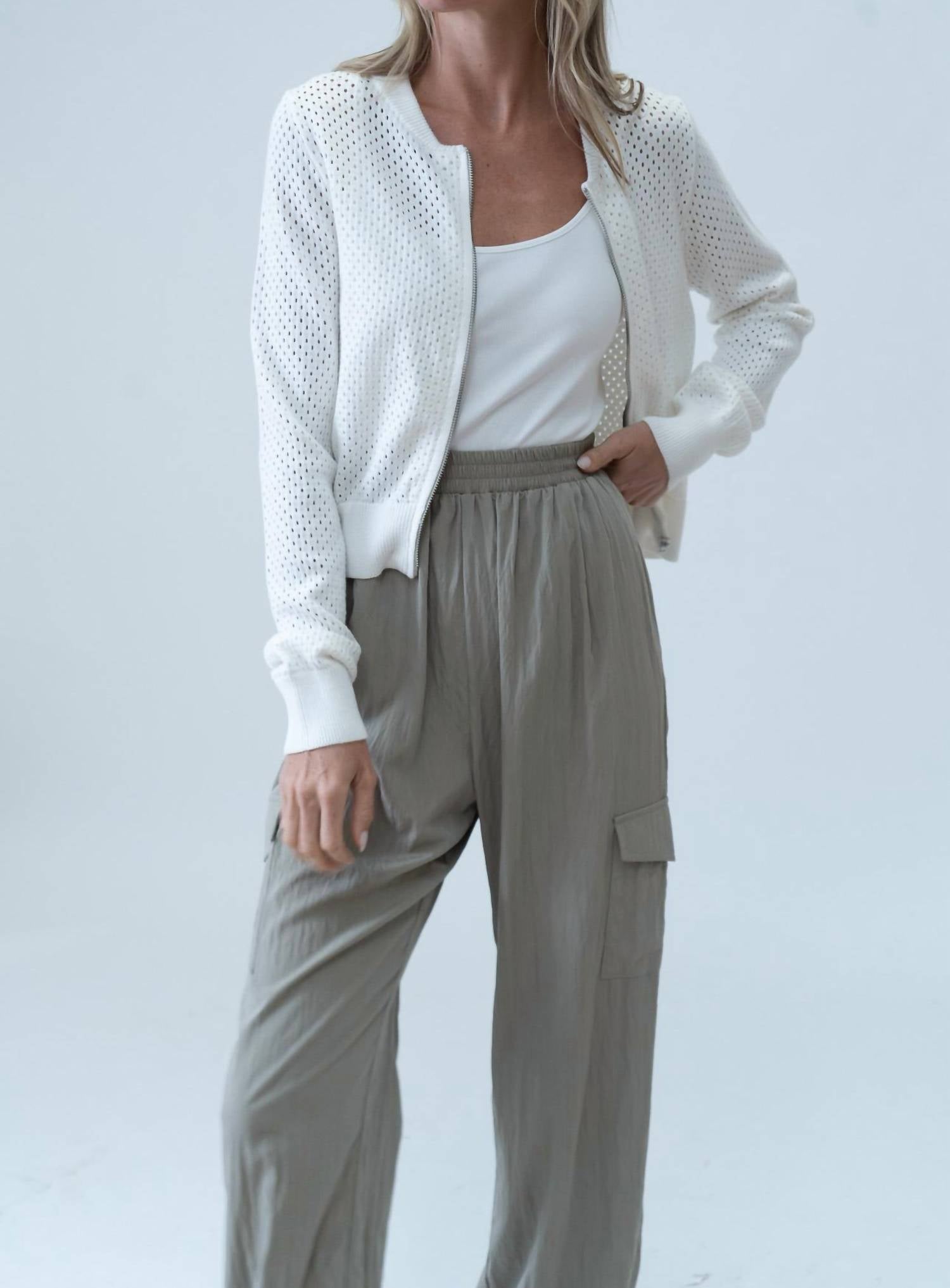 Throw it on and go! Lindsey Cargo Jumpsuit – Beige/IvoryEffortless, modern, and endlessly versatile, the Lindsey Cargo Jumpsuit combines laid-back comfort with refined style. Designed with lightweight khaki beige cargo bottoms and a contrasting soft rayon-nylon ivory tank, this one-piece offers a relaxed yet polished look perfect for any occasion. The comfortable stretch waistband and tapered ankles create a flattering silhouette, while the breathable fabric ensures all-day ease. Whether dressed up with wedges or styled casually with sneakers, this jumpsuit transitions seamlessly from day to night.Details:Lightweight khaki beige cargo-style bottomsSoft rayon and nylon ivory tank (unlined)Comfortable stretch waistband for a flexible fitTapered stretch ankle for a modern finishRecommended: nude bra for smooth coverageTrue to size – see size chart for best fitColor: Beige/Ivory