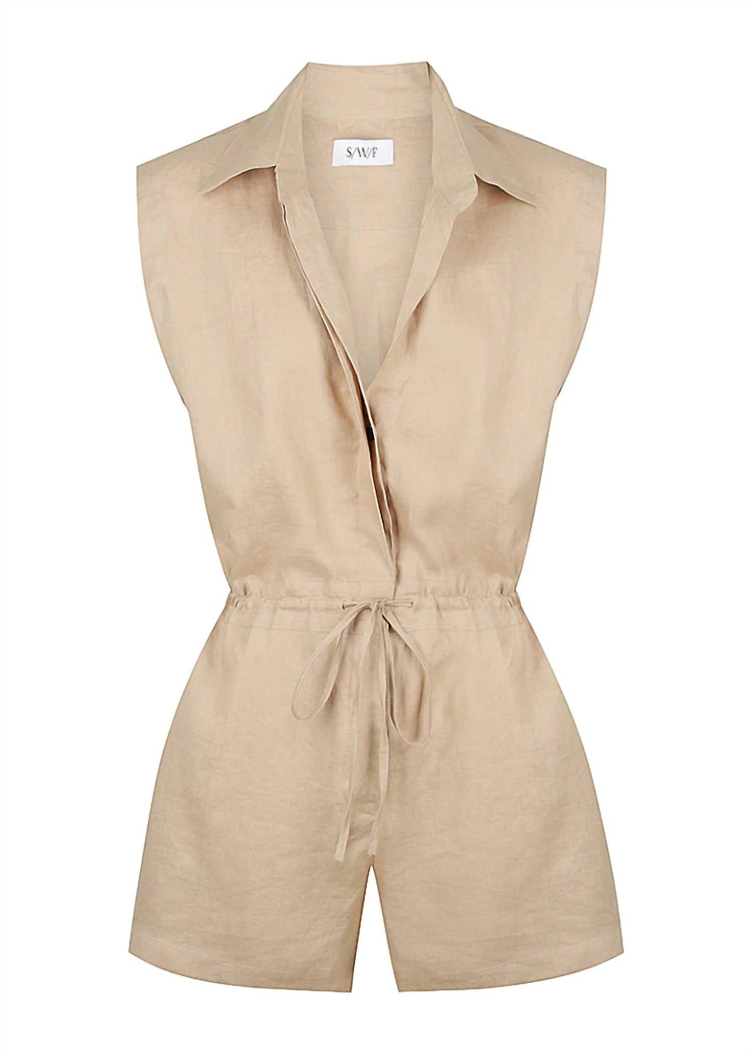 Tempered by an adjustable shoestring belt, the style gathers softly at the waist and features a plunging V neckline. Prints and colours may vary slightly due to the handmade nature of each piece. 100%Â Sustainable Linen. Gentle cold hand wash separately. Do not bleach. Dry flat in shade. Do not tumble dry. Dry clean professionally.