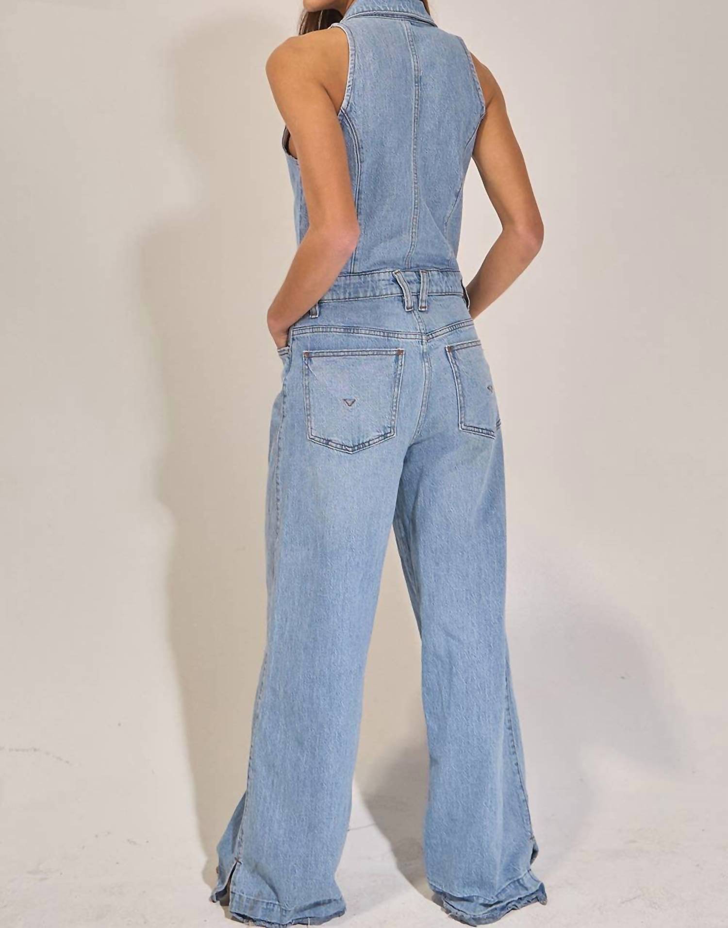 The perfect outfit choice when you you need something quick to throw on and still want to look efforlessly cool. Step into style with the Collared Wide Leg Denim Jumpsuit from BUCKETLIST, crafted from 90% Cotton, 10% Spandex. This sleeveless piece in a light denim finish features a classic collared neckline and a full button-up front for easy wear. With its wide-leg silhouette and practical pockets, it offers a chic and versatile addition to your wardrobe, ideal for summer outings and holiday parties. Care for your jumpsuit with ease as it is machine washable and dryer friendly.