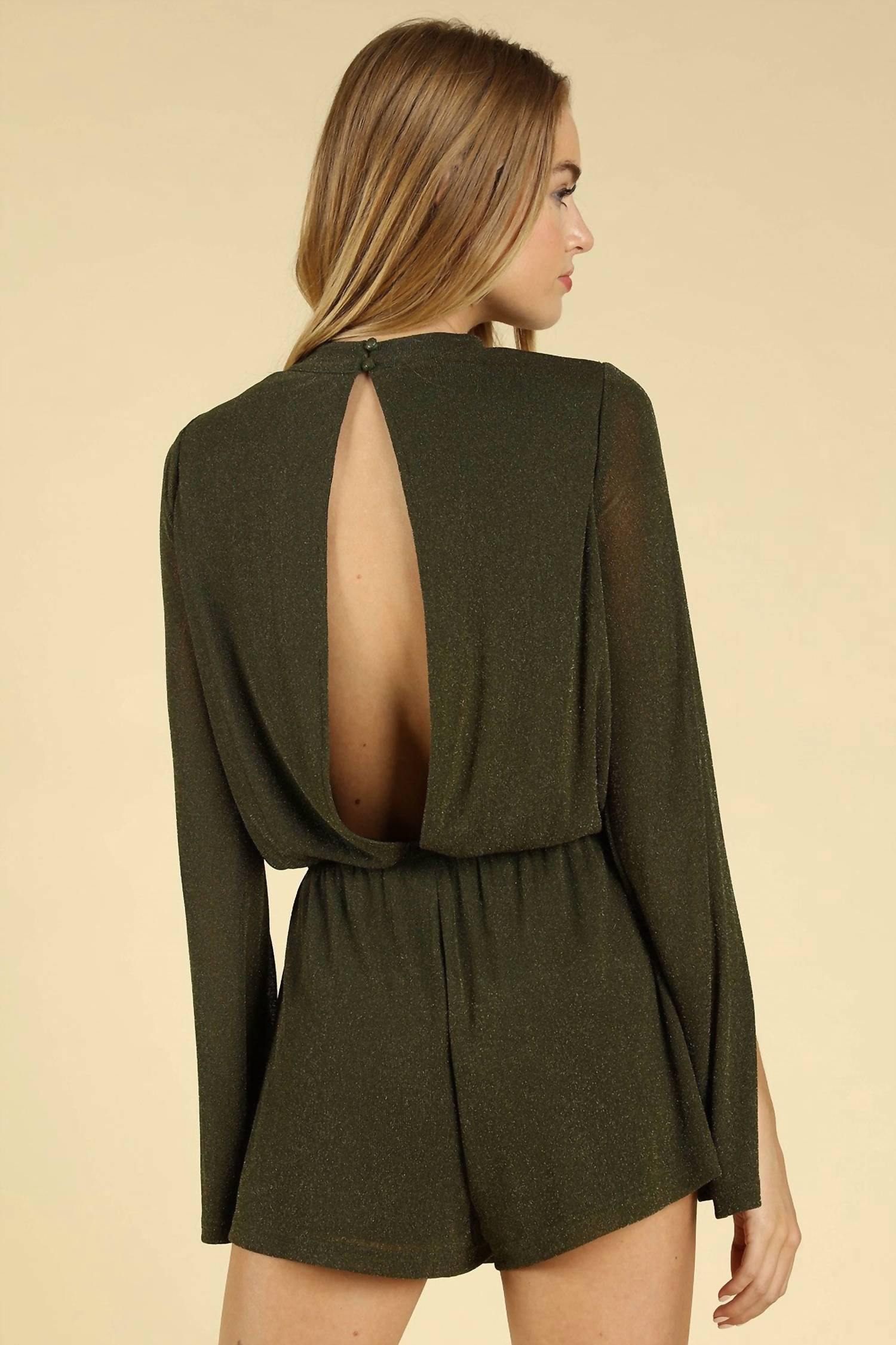 Honey Punch - Shimmering Long Sleeve Wrap Romper