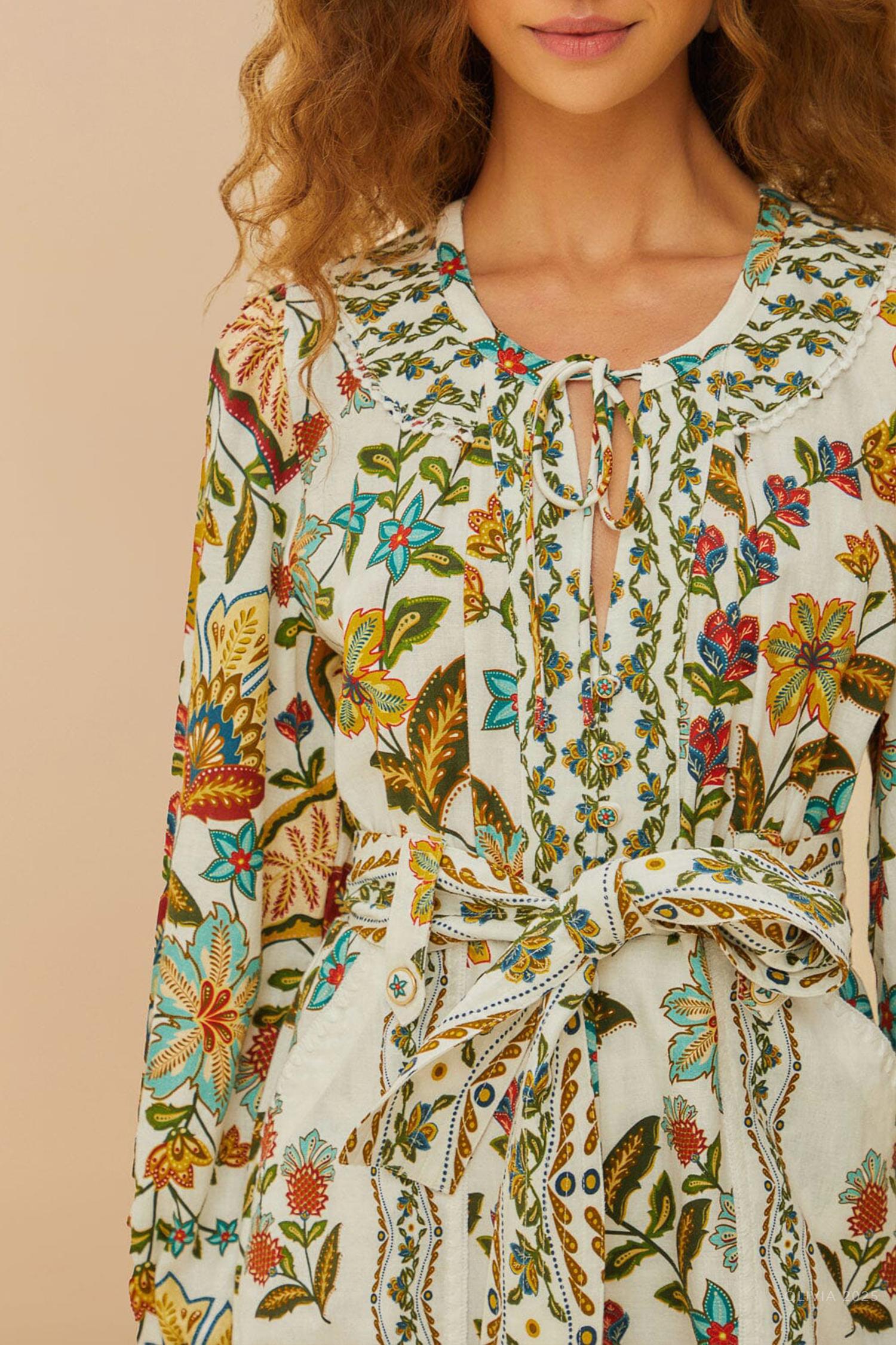 It doesn't take much for this one piece to look effortlessly cool. Add some statement jewelry to dress it up, or throw on some sneakers for a more casual vibe. Meet the Off-White Botanicals Belted Romper by FARM Rio, a stunning piece that embodies the boho chic trend. Crafted from a blend of 55% linen and 45% viscose, this romper offers both comfort and breathability. It features a floral pattern and includes pockets for added function, with a button closure for an easy fit. This imported piece is machine washable and suitable for tumble drying, aligning seamlessly with your laid-back yet stylish summer wardrobe.