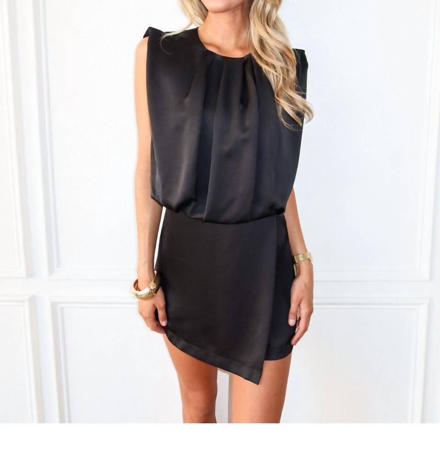 It doesn't take much for this one piece to look effortlessly cool. Add some statement jewelry to dress it up, or throw on some sneakers for a more casual vibe. Meet the Shadow Play Sleeveless Romper by GLAM, a chic and effortless piece in timeless black. This romper is sleeveless and masterfully crafted from 100% polyester, featuring a shift silhouette with a high-rise waist and straight leg. The pull-on closure design enhances comfort and style, making it the perfect choice for both holiday parties and everyday minimalist looks. For care instructions, hand wash cold and line dry for best results. Model is 5'7" and wearing a size Small.
