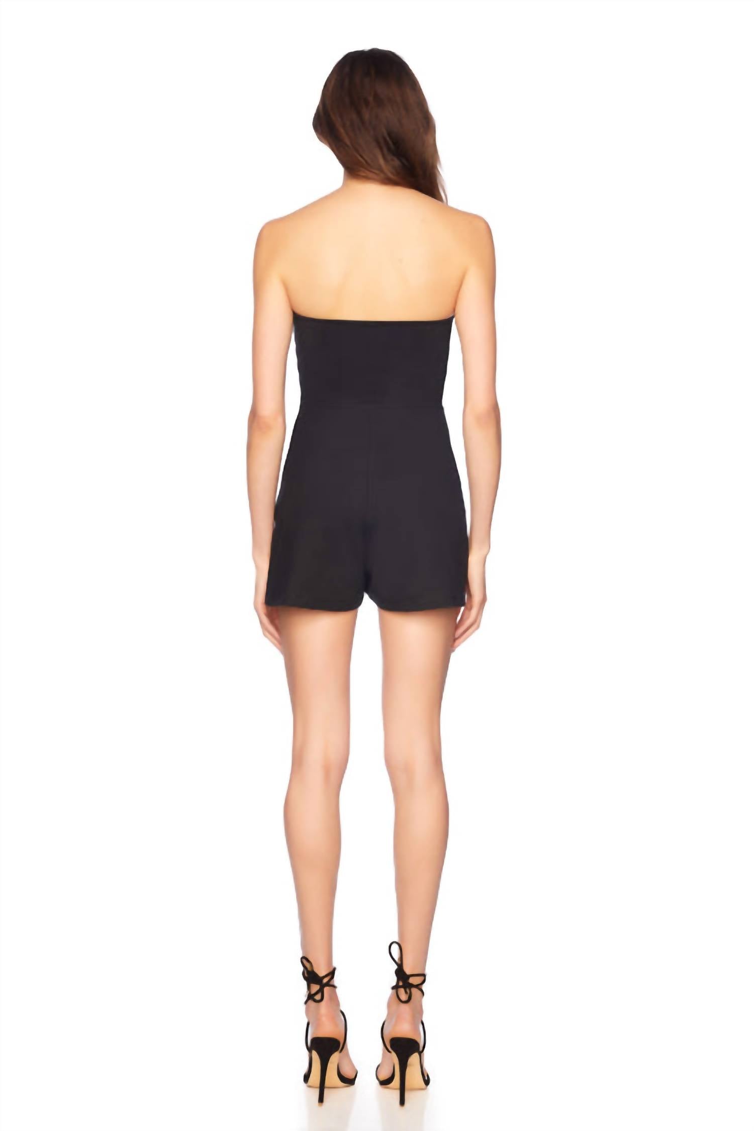 It doesn't take much for this one piece to look effortlessly cool. Add some statement jewelry to dress it up, or throw on some sneakers for a more casual vibe. Introducing the Sweetheart Tube Romper by Susana Monaco, a chic addition to your minimalist spring wardrobe. This strapless romper features a solid black bodycon silhouette, perfect for a dinner party. Crafted from a 90% nylon and 10% spandex blend, it includes a convenient 3" inseam and pockets for your essentials. Care is simple with machine washable instructions.