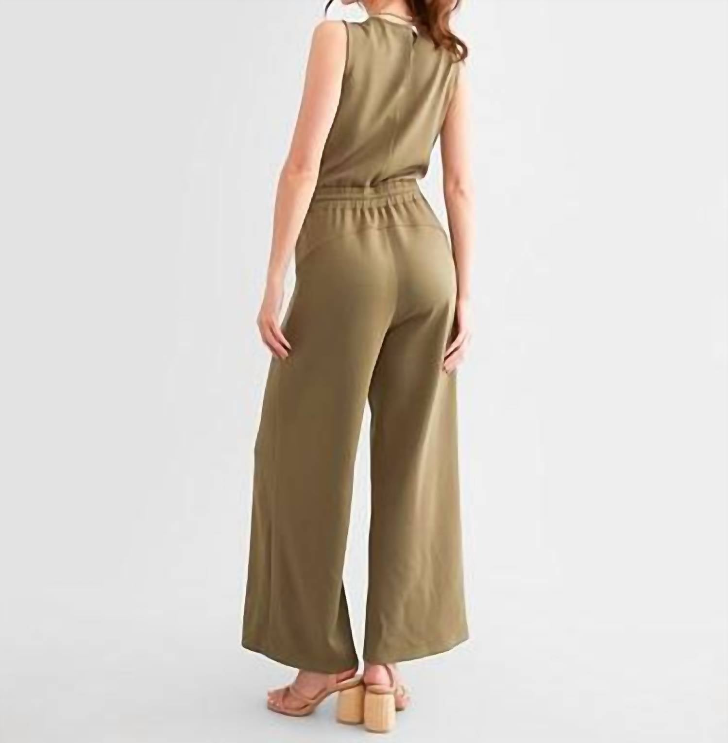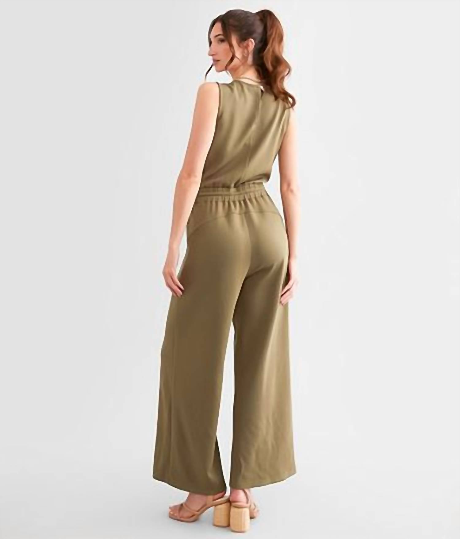 It doesn't take much for this one piece to look effortlessly cool. Add some statement jewelry to dress it up, or throw on some sneakers for a more casual vibe. This scoop neck jumpsuit is the perfect blend of comfort and style—an outfit you’ll want to wear on repeat. Designed with an elasticized cinch tie waistband for a flattering fit and a back button keyhole for easy wear, it’s effortlessly chic. It offers a sleek silhouette that's ideal for lounging or stepping out in style. A must-have piece that’s sure to become your new favorite.