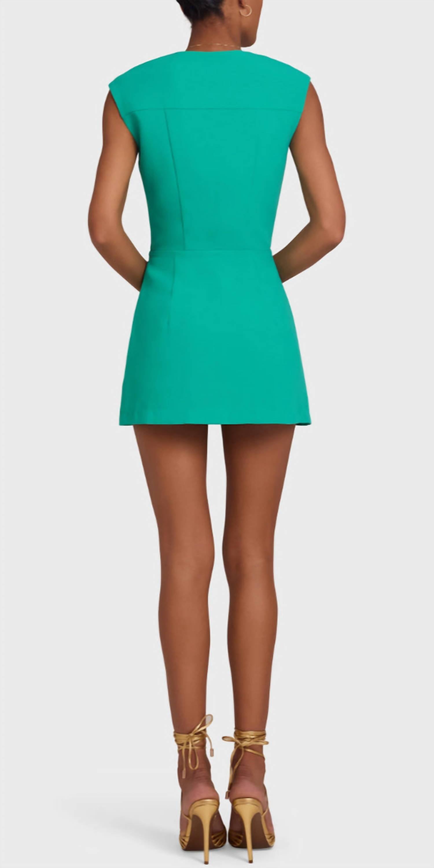 It doesn't take much for this one piece to look effortlessly cool. Add some statement jewelry to dress it up, or throw on some sneakers for a more casual vibe. The Georgie Skort Romper by Amanda Uprichard in a refreshing Seafoam hue is a standout piece for any summer occasion. This stylish one-piece features short sleeves and a straight neck, elegantly detailed with five novelty gold buttons. Crafted with 100% polyester and fully lined, it offers a luxurious feel, complete with an invisible zip closure. Perfect for stylish lunch dates or vacation outings, this romper is both playful and polished.