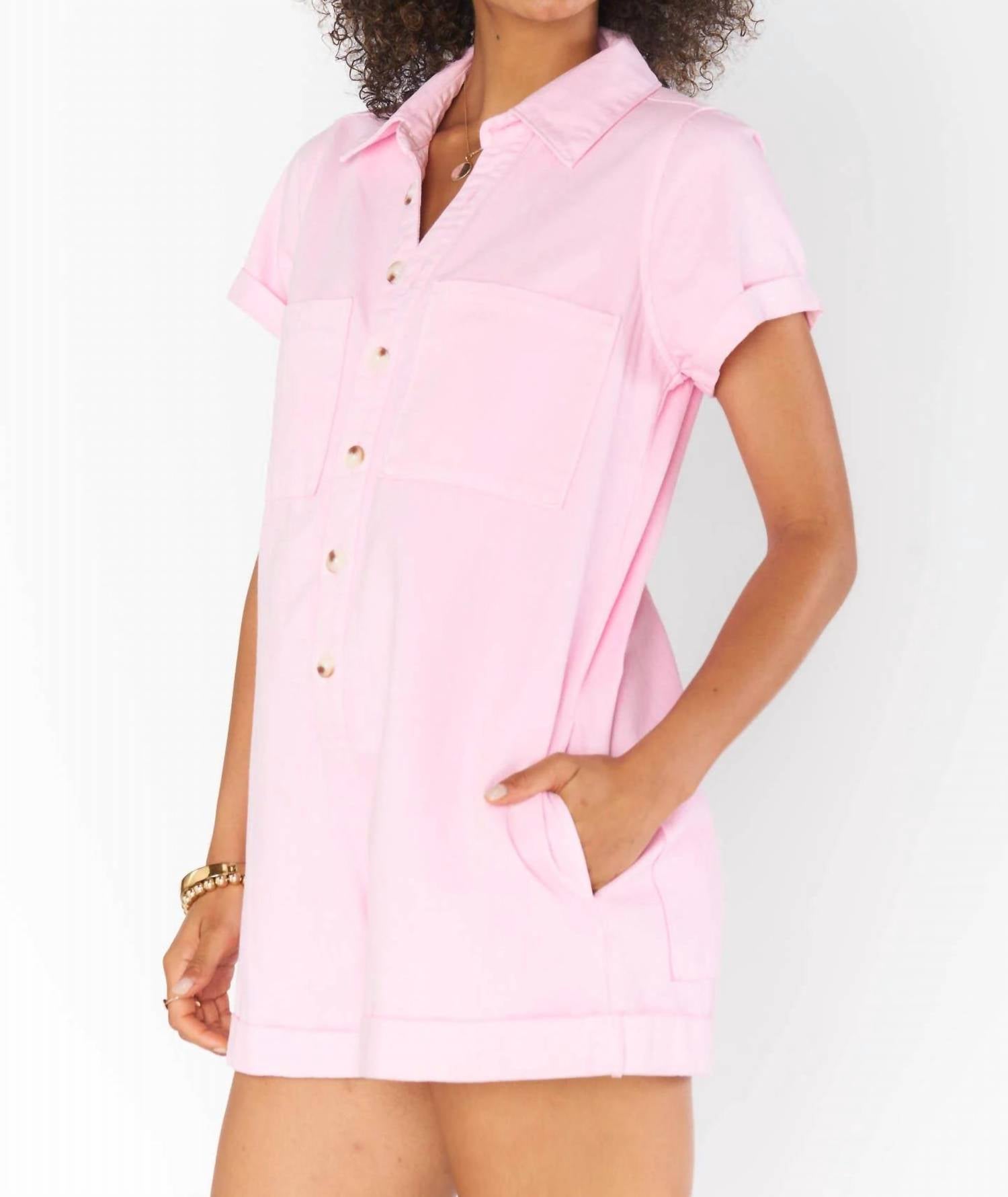 It doesn't take much for this one piece to look effortlessly cool. Add some statement jewelry to dress it up, or throw on some sneakers for a more casual vibe. Elevate your style with the Show Me Your Mumu Range Denim Romper in a vibrant candy pink. Crafted from high-quality cotton, this romper combines comfort with a chic aesthetic. It features a convenient button closure and versatile pocket detail, making it a practical yet fashionable choice. Perfect for effortlessly cool looks, pair it with accessories like a hat or cowboy boots to complete your outfit.