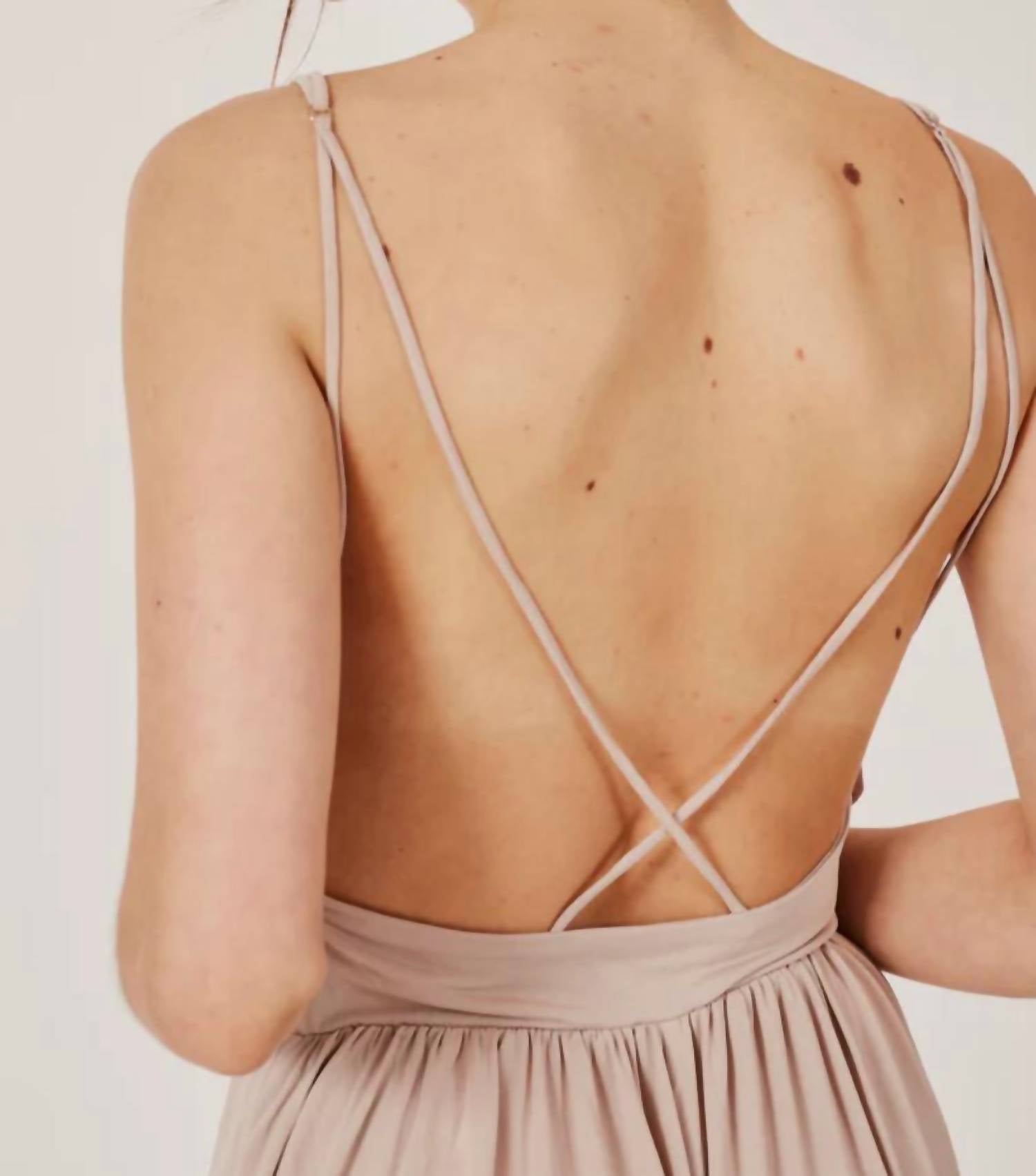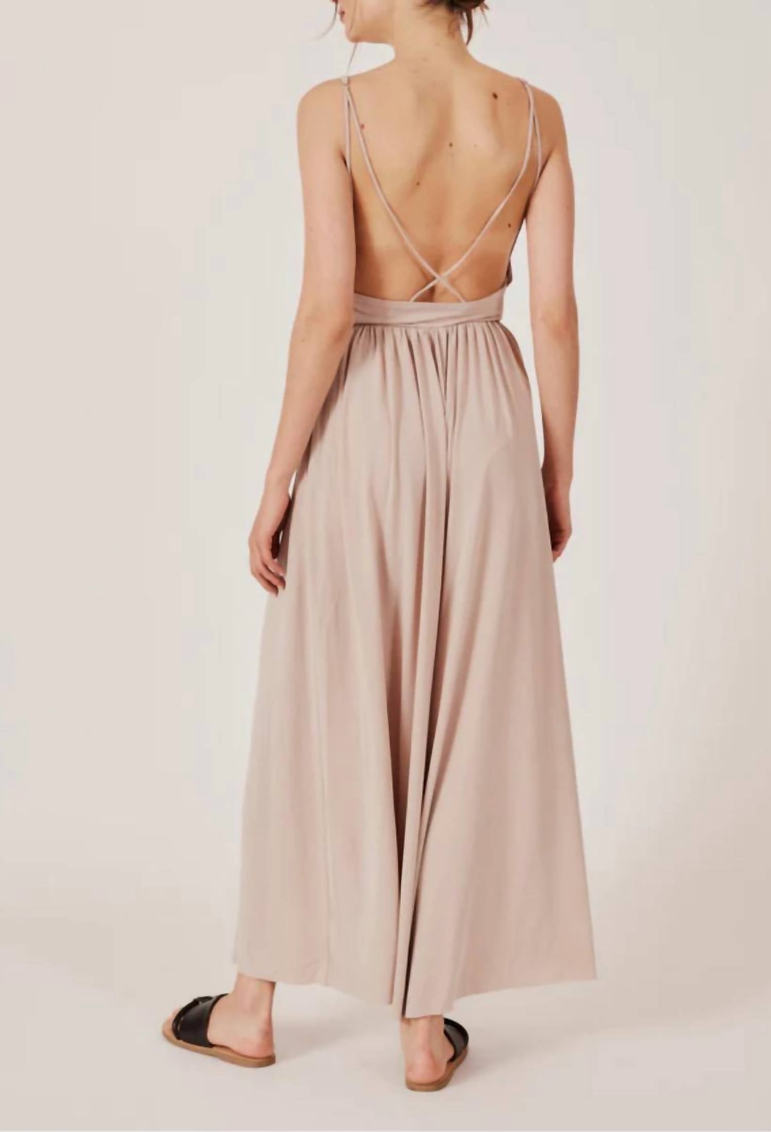 It doesn't take much for this one piece to look effortlessly cool. Add some statement jewelry to dress it up, or throw on some sneakers for a more casual vibe. Embrace effortless elegance in a stylish sand hue. Designed for both comfort and style. Features sleek spaghetti straps and a relaxed, wide-leg fit. Offers functional pockets and a convenient pull-on closure. Perfect for a chic and modern look.