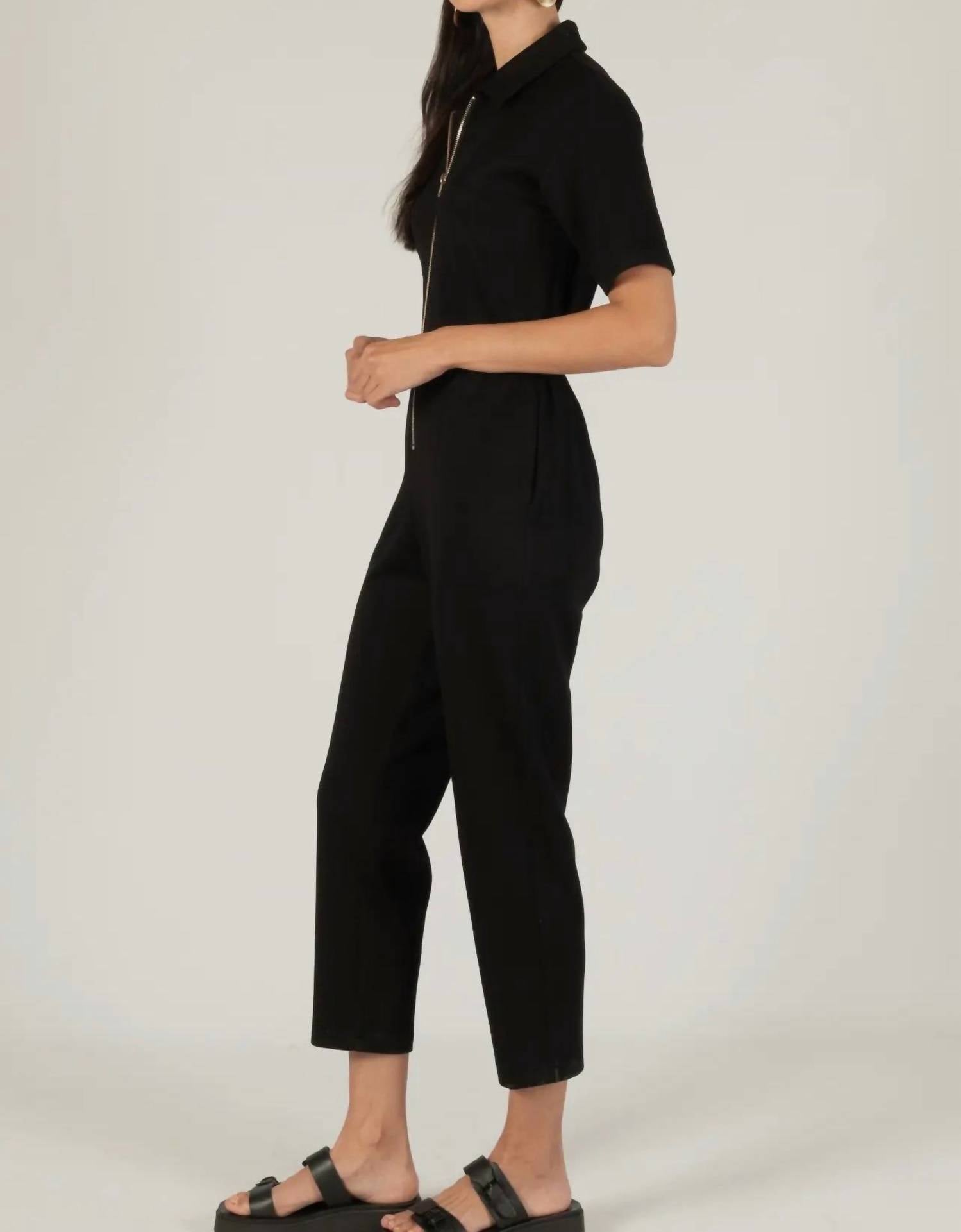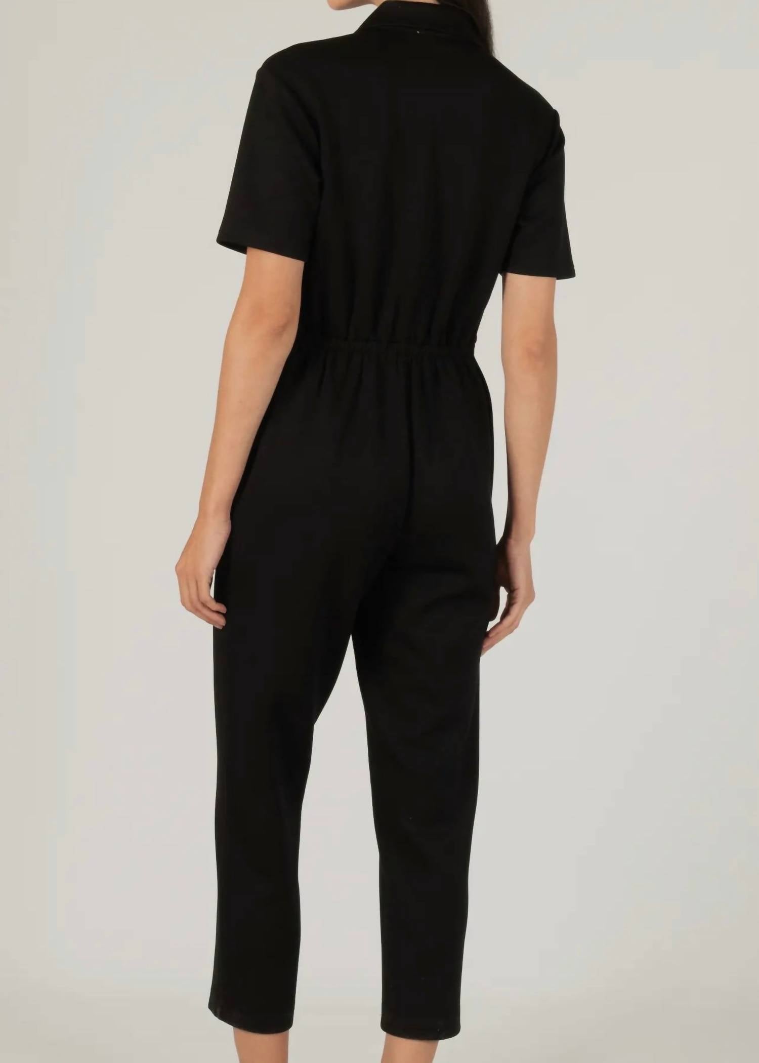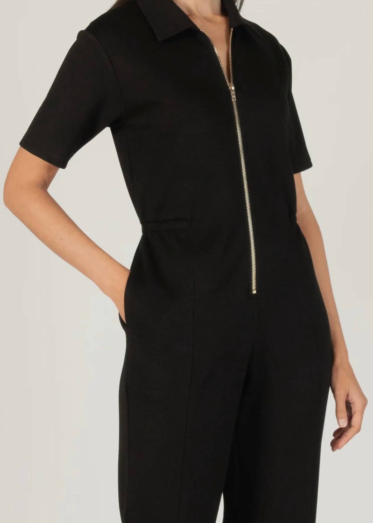 The perfect outfit choice when you you need something quick to throw on and still want to look efforlessly cool. Elevate your wardrobe with the Skyla Jumpsuit by Before You, expertly tailored for a sleek, structured look. This minimalist black jumpsuit features short sleeves, a zip closure, and convenient pockets, making it ideal for summer vacations. Made from a blend of 48% Modal, 48% Polyester, and 4% Spandex, it offers both comfort and style with its straight leg design. For care, simply hand wash to maintain its pristine condition.