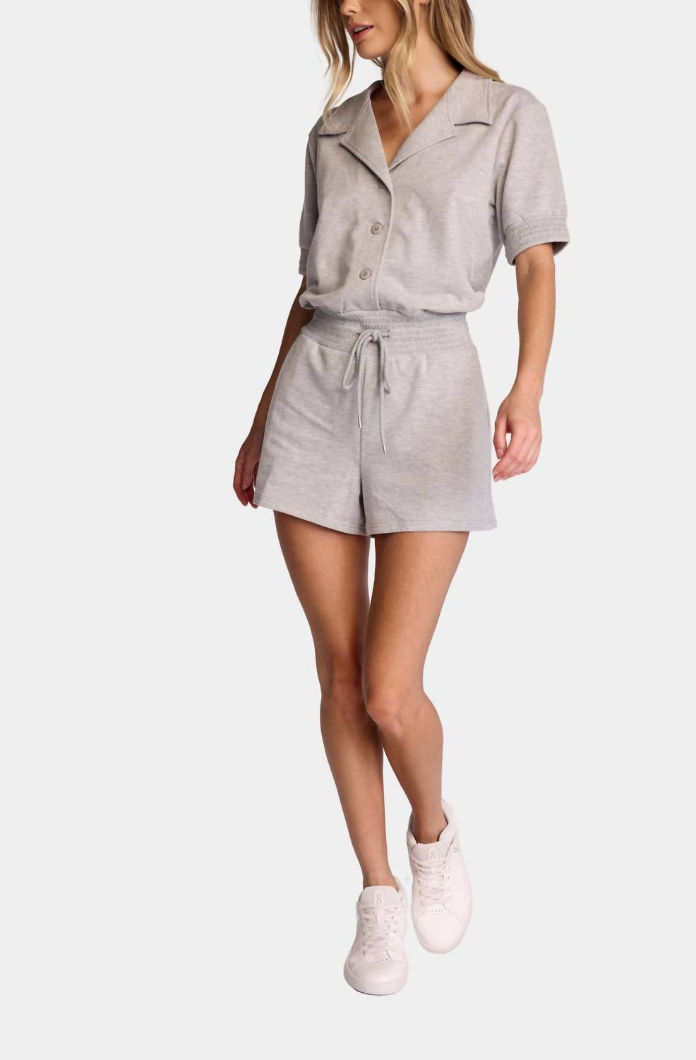 It doesn't take much for this one piece to look effortlessly cool. Add some statement jewelry to dress it up, or throw on some sneakers for a more casual vibe. Discover effortless summer style with the Coras Romper by Sundays, a chic vacation-ready piece in elegant Fog Heather Grey. Crafted with functionality in mind, this minimalist romper includes convenient pockets and a sophisticated button closure. Ideal for keeping a sleek silhouette with its solid pattern, it's perfect for any casual occasion. Please note that wash and dry instructions are not provided.