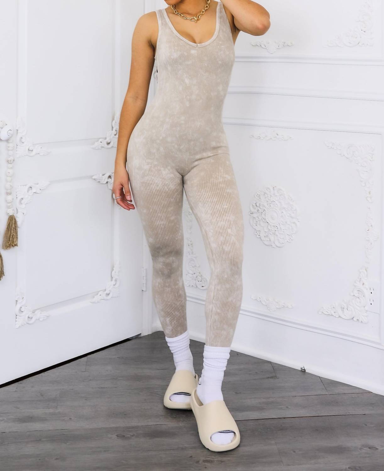 It doesn't take much for this one piece to look effortlessly cool. Add some statement jewelry to dress it up, or throw on some sneakers for a more casual vibe. Introducing the Beige Mineral Wash Jumpsuit by SurelyMine, an effortlessly stylish piece for your wardrobe. Crafted from high-quality denim, it features a pull-on closure with a mid-rise waist and a skinny leg design, perfect for a chic vacation look. This solid-patterned jumpsuit adds a unique touch with its distinctive mineral wash design. Available in size S/M, it pairs perfectly with a corduroy jacket for a complete ensemble.
