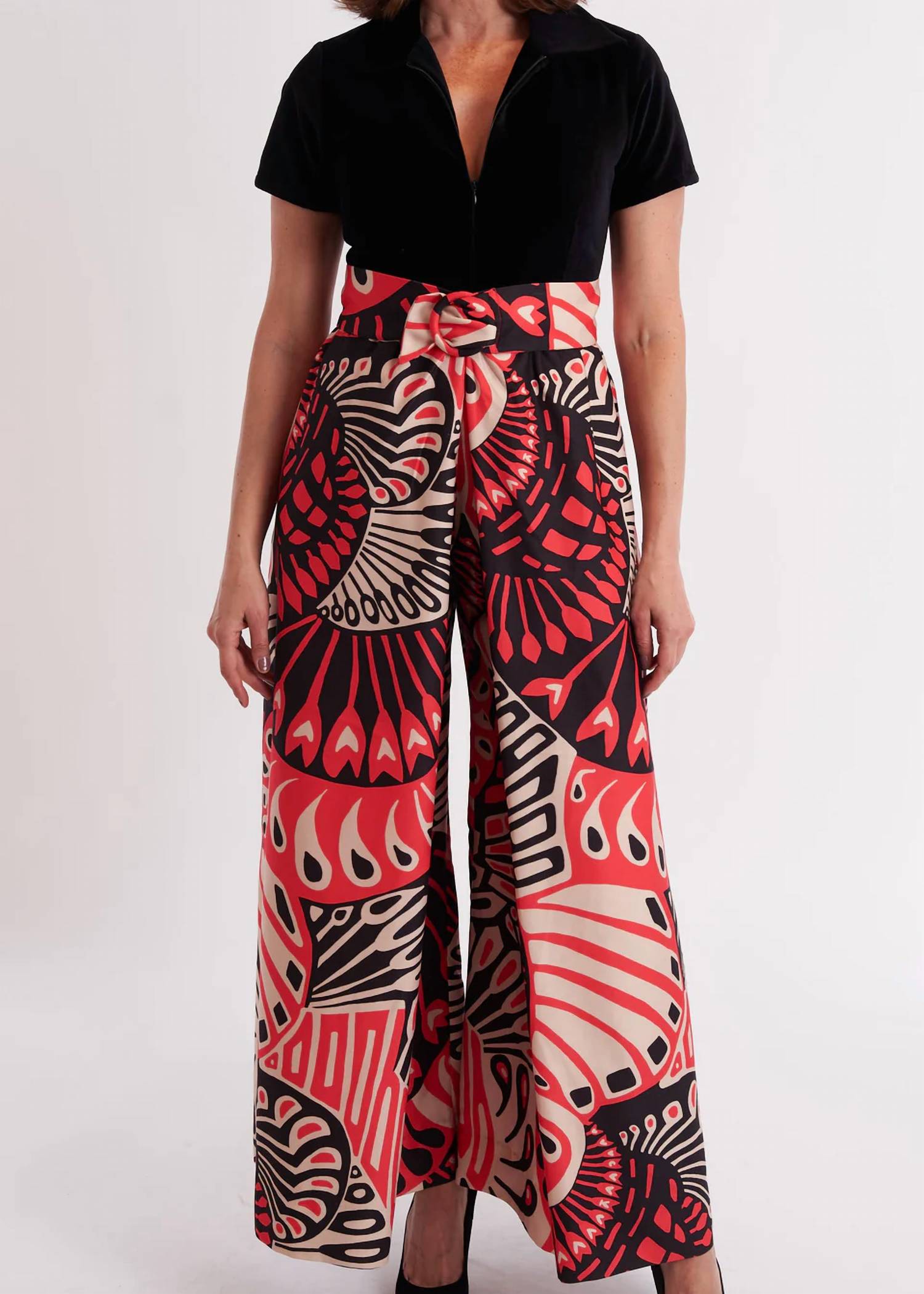 The perfect outfit choice when you you need something quick to throw on and still want to look efforlessly cool. Step into the spotlight with the CK BRADLEY Culotte Jumpsuit in a vibrant Padel Party print, designed for the confident woman who embraces maximalist fashion. This jumpsuit features a 100% cotton velvet top paired with a crepe bottom, complemented by a convenient zip closure and practical pockets. The high-rise waist and relaxed fit wide-leg design evoke a retro charm with a modern twist, perfect for any vacation or Mother's Day celebration. Care for this standout piece by dry cleaning to maintain its bold look.