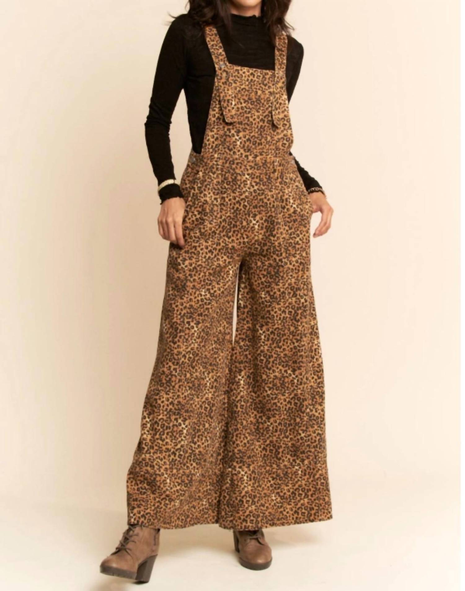 Throw it on and go! Introducing the Animal Printed Denim Wide Open Leg Overall Pants by DAVI & DANI, designed to make a stylish statement. Crafted from 100% cotton, these overalls boast a relaxed fit with a wide-leg design for ultimate comfort and ease of movement. The bold animal print adds a trendy, maximalist touch, perfect for fall vacations or casual outings. Closure: Button closure.