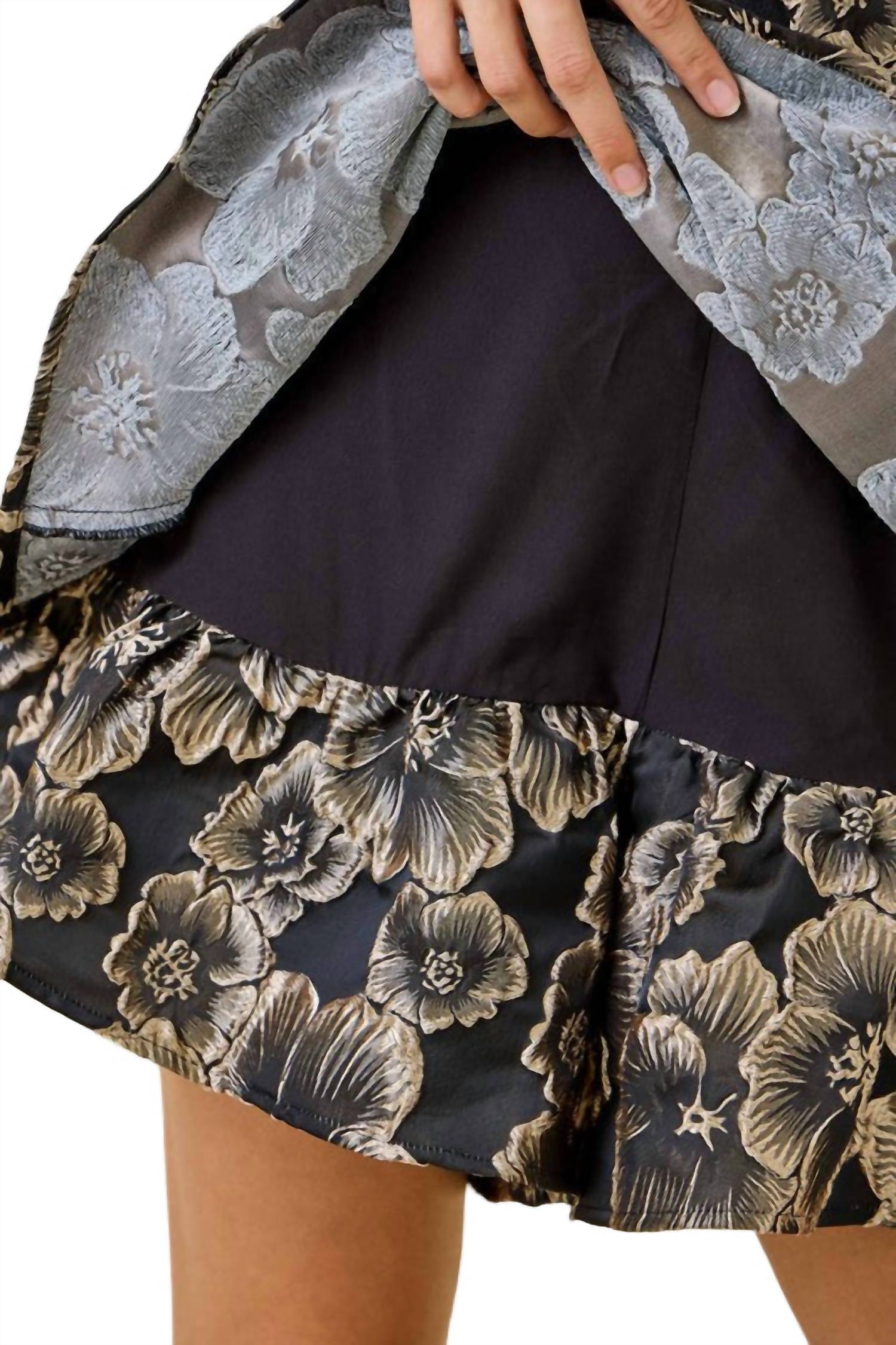 The perfect outfit choice when you you need something quick to throw on and still want to look efforlessly cool. Elevate your party wardrobe with the Petra Party Romper by Day + Moon, a standout piece that combines elegance with fun in luxurious gold and black floral brocade. This sleeveless romper offers a sophisticated style perfect for holiday parties and formal events. Made from 100% polyester, it features an intricately designed floral pattern that exudes timeless charm. Care instructions suggest hand washing and line drying to preserve its polished look.