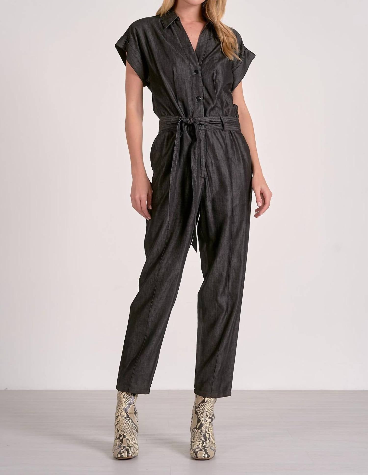 It doesn't take much for this one piece to look effortlessly cool. Add some statement jewelry to dress it up, or throw on some sneakers for a more casual vibe. Elevate your streetwear style with the Utility Short Sleeve Belted Jumpsuit by ELAN in a chic Dark Grey Wash. This jumpsuit, crafted from a cotton blend consisting of 98% Cotton and 2% Elastane, features a solid pattern with a high-rise waist and regular-fit straight legs. Ensuring a smart silhouette, it also includes a button closure. Care instructions recommend hand washing and line drying to maintain its impeccable look.