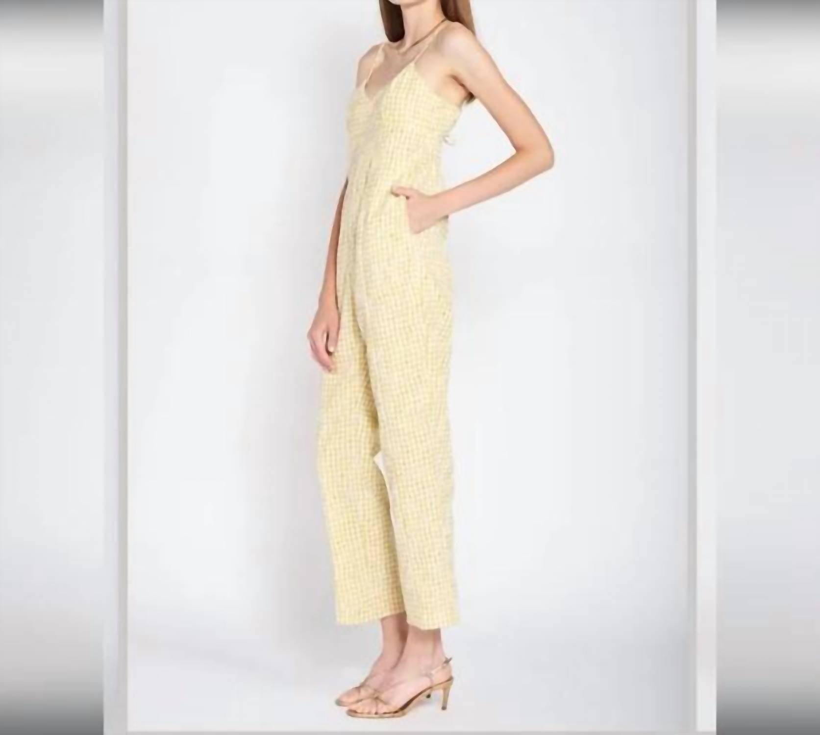 Throw it on and go! Add a pop of color to your wardrobe with the En Saison Linen Blend Jumpsuit in vibrant yellow. Designed with a high-rise waist and relaxed fit, this piece guarantees comfort and style in any setting. The straight leg silhouette and minimalist pattern make it a chic choice for fall, particularly perfect for Thanksgiving or vacation wear.