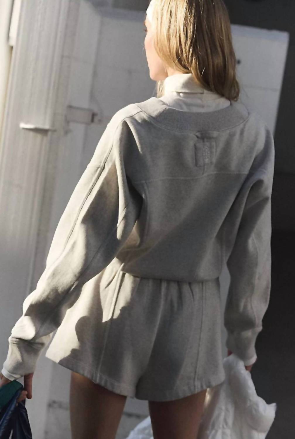 It doesn't take much for this one piece to look effortlessly cool. Add some statement jewelry to dress it up, or throw on some sneakers for a more casual vibe. Elevate your casual wardrobe with the Intercept V-neck Romper by Free People, offered in a versatile Heather Grey. This relaxed-fit piece boasts long sleeves and a V-neckline, crafted from a comfortable 78% Cotton and 22% Polyester blend. Enrich your style with its slouchy design, dropped shoulders, and a drawstring waist that adds a flattering shape. Featuring zip-closure side pockets for convenience, this romper is machine washable and should be laid flat to dry.