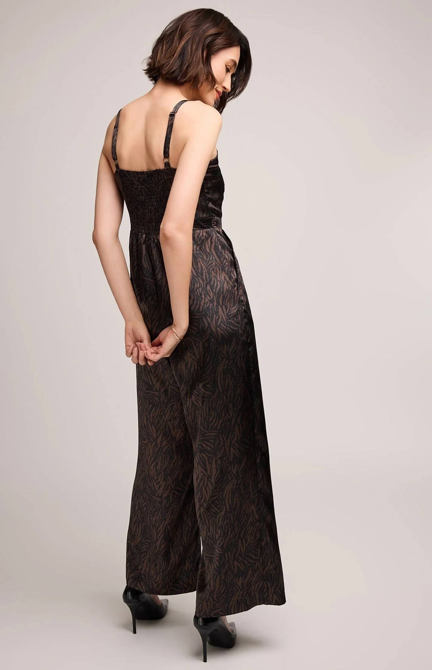 Throw it on and go! Discover the elegance of the Irina Satin Jumpsuit by Gentle Fawn, perfect for your fall vacation wardrobe. This stunning jumpsuit in Java Print features adjustable straps, a wide leg, and a back smocking panel for a comfortable fit. Crafted from 100% recycled polyester, it offers a sustainable choice with the added convenience of slash pockets. Easy to maintain, simply hand wash cold and lay flat to dry.
