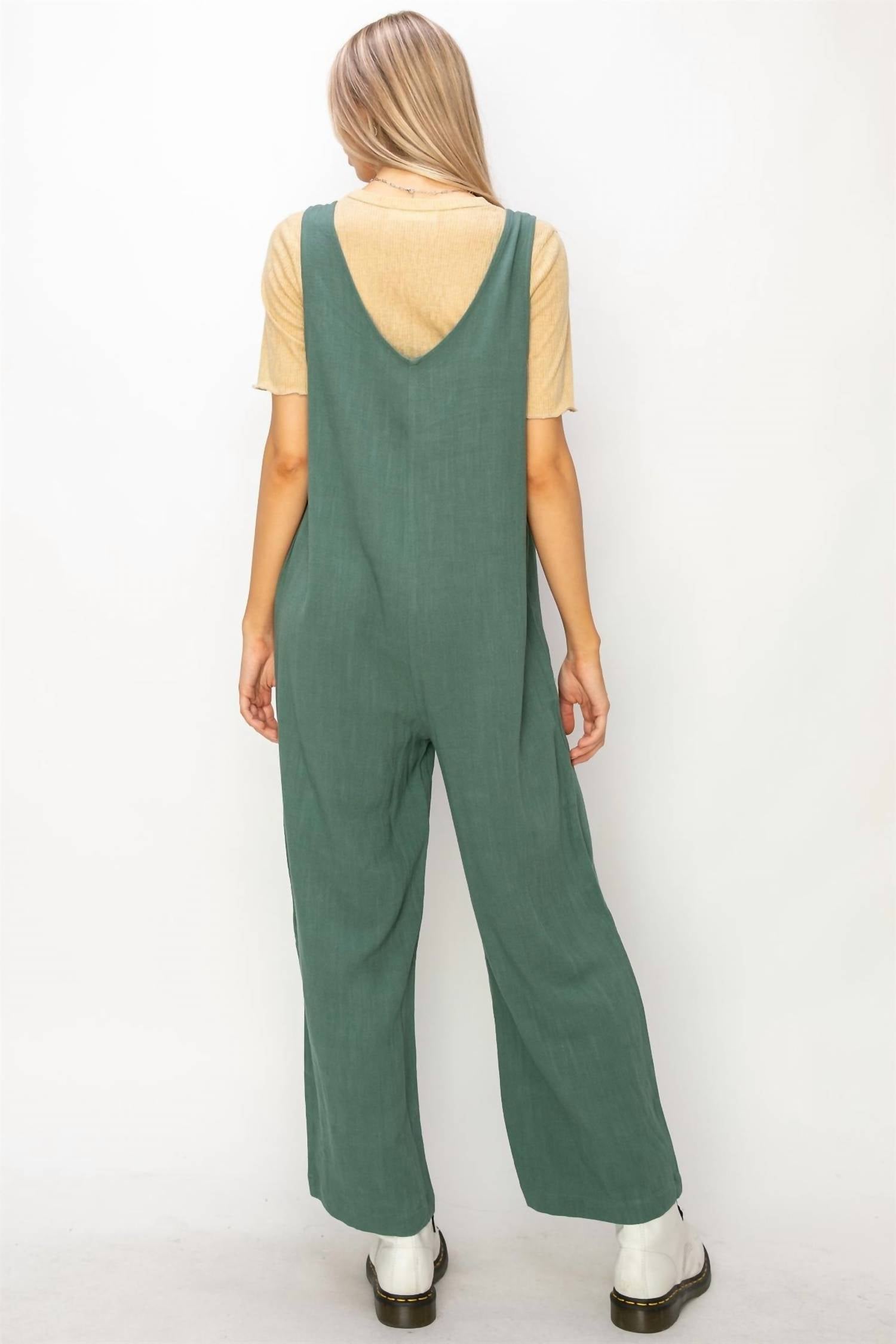 The perfect outfit choice when you you need something quick to throw on and still want to look efforlessly cool. Unleash your style with this Linen Luxury Jumpsuit, featuring a flattering V-neckline and a relaxed bodice that flows into a straight-leg silhouette. Sleeveless and effortlessly chic, it’s a must-have addition to any wardrobe.