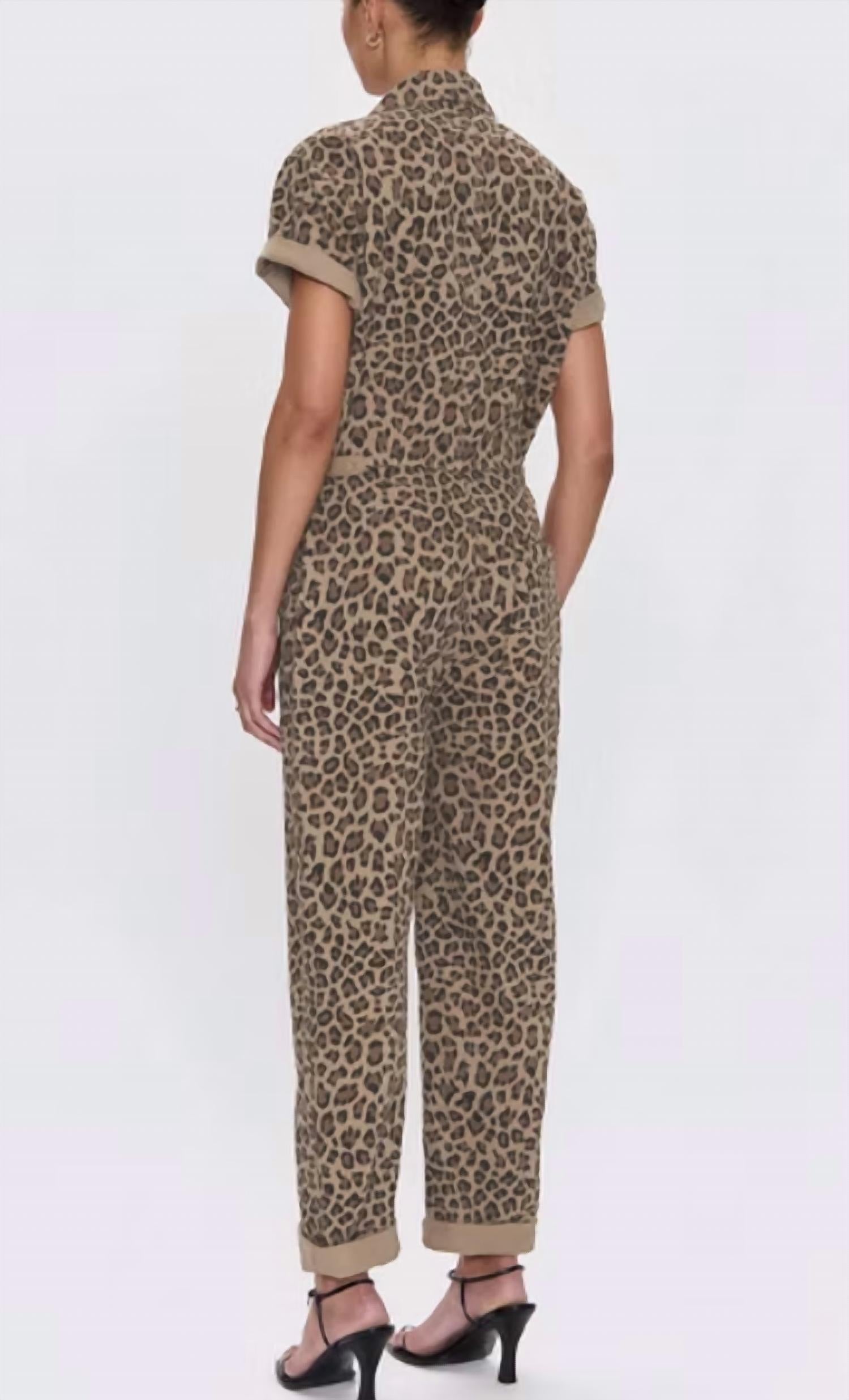 The perfect outfit choice when you you need something quick to throw on and still want to look efforlessly cool. Unleash your wild side with the Grover Collared Jumpsuit by PISTOLA, featuring a relaxed fit in Feline print. This versatile one-piece offers a front button closure and adjustable button straps at the waist for a tailored or loose fit, boasting a mid-rise with an 11.25-inch rise and 28-inch inseam. Crafted from 100% cotton, it's the ideal blend of comfort and style. Care: Machine wash.