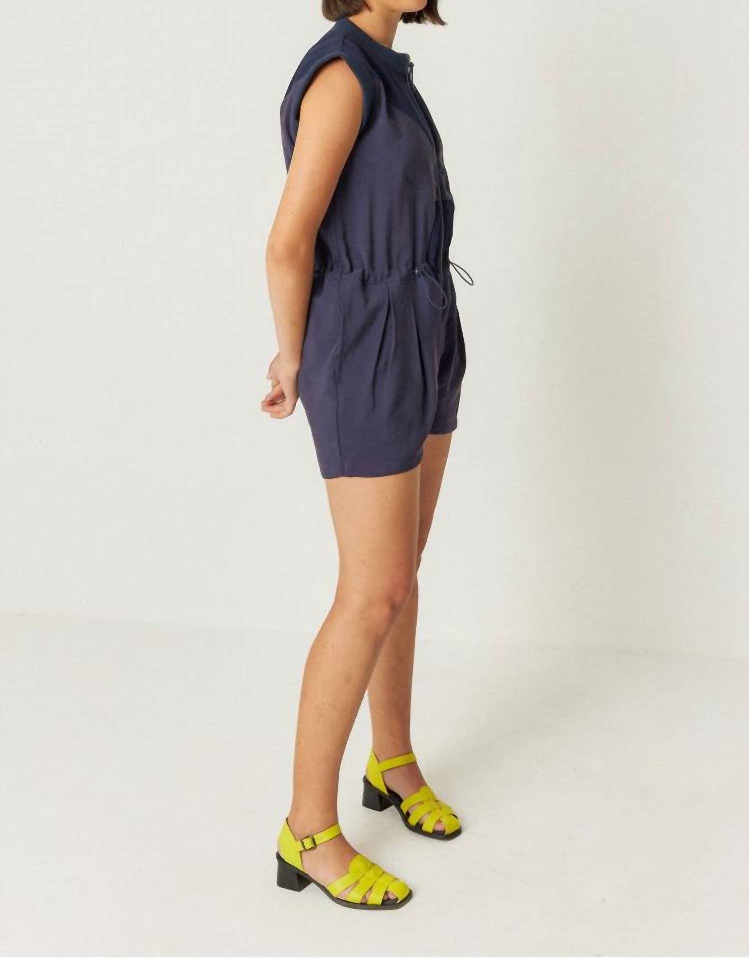 The perfect outfit choice when you you need something quick to throw on and still want to look efforlessly cool. Introducing the Irati Sleeveless Jumpsuit by SKFK, a stylish choice for summer gatherings and holiday parties in an enchanting navy violet. The jumpsuit is crafted from 87% polyester and 13% elastane, offering a patterned design with a relaxed fit and convenient pockets. Perfect for workwear or holiday celebrations, it's an effortlessly chic option. Care instructions recommend hand washing and line drying to maintain its quality.