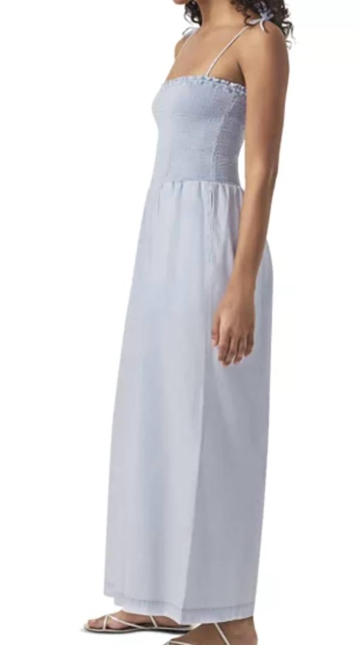 The perfect outfit choice when you you need something quick to throw on and still want to look efforlessly cool. Elevate your holiday wardrobe with Splendid's Stripe Wide Leg Jumpsuit in a serene Sky hue, perfect for a minimalist look. Crafted from a cotton blend of 81% cotton and 19% lyocell, this jumpsuit is designed with wide leg styling and a relaxed fit, accentuating a high-rise waist for a flattering silhouette. Closure: Tie closure for an adjustable fit. Ideal for vacation wear, this piece effortlessly captures the essence of fall and Thanksgiving gatherings.