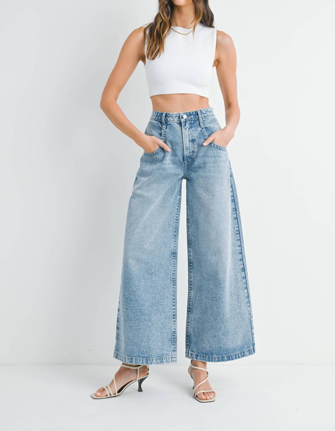 Just as cute as they are comfortable. Introducing the Low-Rise Super Wide Leg Jeans by JUST BLACK DENIM, a quintessential blend of retro and contemporary style. These jeans boast a low-rise design with an impressive 11" rise and 32" inseam, crafted from 100% cotton for a comfortable fit. The super wide-leg silhouette in medium wash denim creates a bold fashion statement, draping elegantly from waist to floor with a relaxed fit. Made in the USA, these jeans feature a button closure and are machine washable, embodying effortless style and sophistication for any casual or chic ensemble.