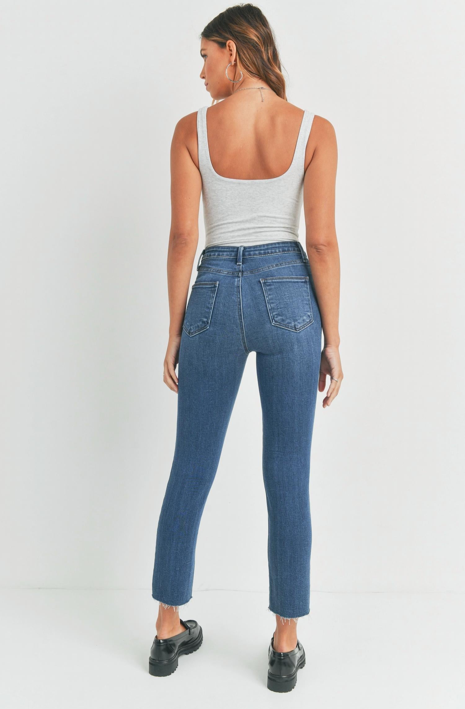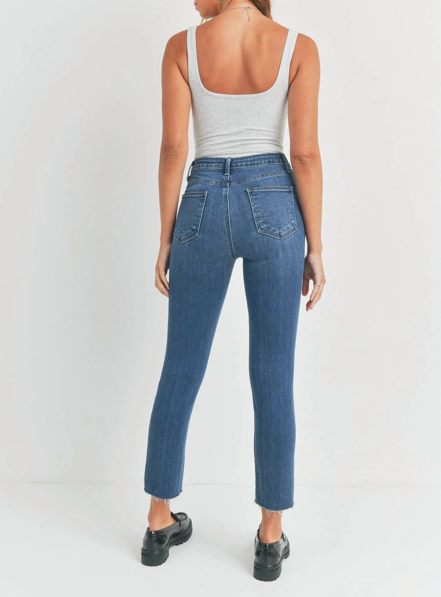 These must-have jeans are fit to perfection. Discover the Clean Slender Straight Leg Jean by JUST BLACK DENIM, crafted for both style and comfort. These blue jeans boast a versatile high-rise waist and a flattering straight leg that gracefully lands just above the ankle, ensuring an on-trend silhouette. Made from 93% Cotton, 5% Polyester, and 2% Spandex, these jeans offer a comfortable fit with a button closure and practical pockets. Designed specifically for women with a solid pattern, they are perfect for any spring streetwear occasion, whether you're off on vacation or just enjoying a casual outing.