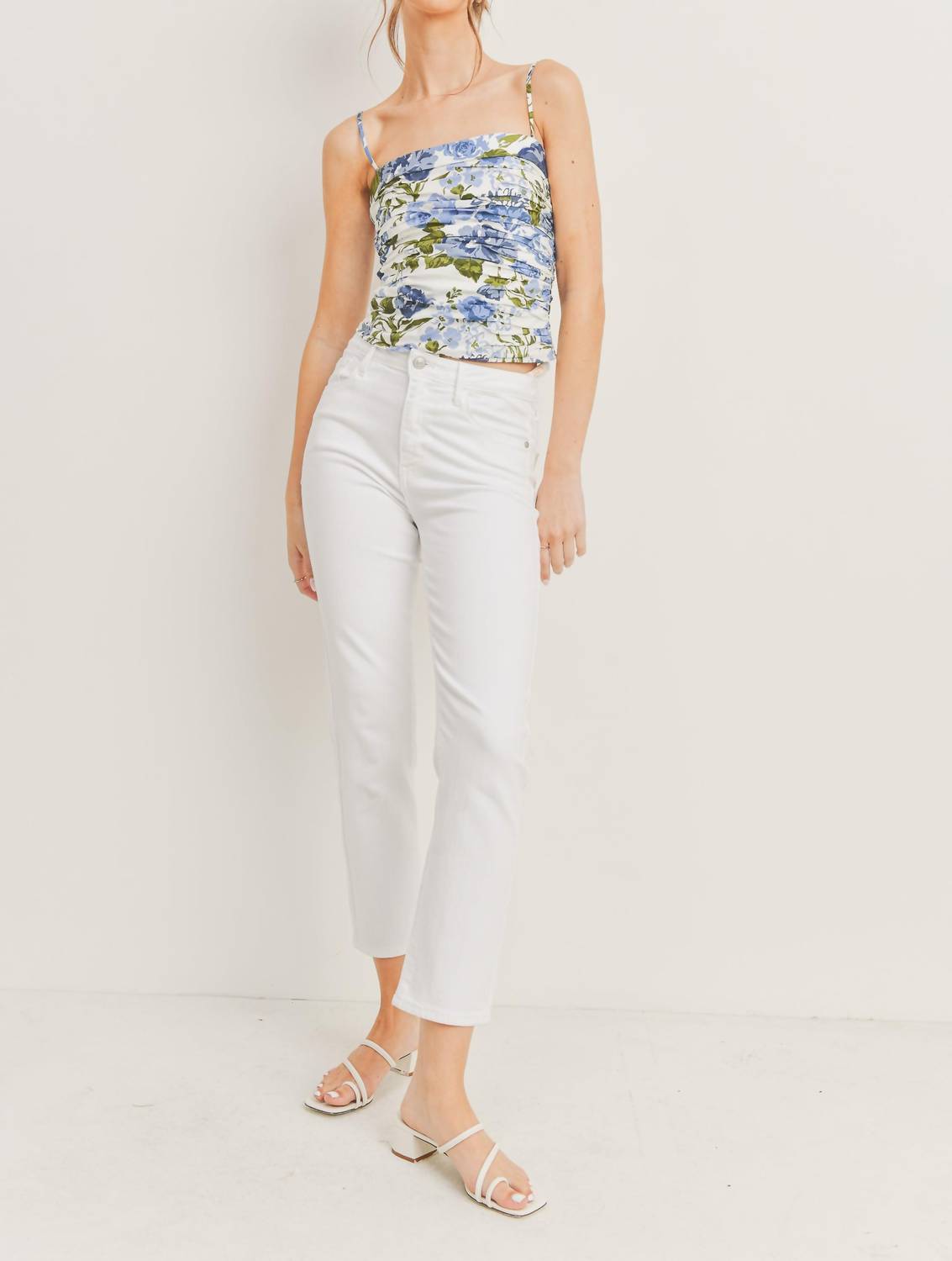 This classic straight leg jean has a perfect fit and goes with just about everything. Elevate your wardrobe with the Judie High Rise Straight Jeans by Just Black Denim, a perfect blend of style and comfort in classic white. Crafted from high-quality denim, these jeans offer a flattering high-rise fit with a cropped 26.5" inseam and a slim 6.5" opening. They feature a zip and button closure for secure wear and are easy to care for with machine wash cold and tumble dry instructions. Ideal for a minimalist look, these jeans are versatile enough to be a staple for spring gatherings or a Thanksgiving dinner party.