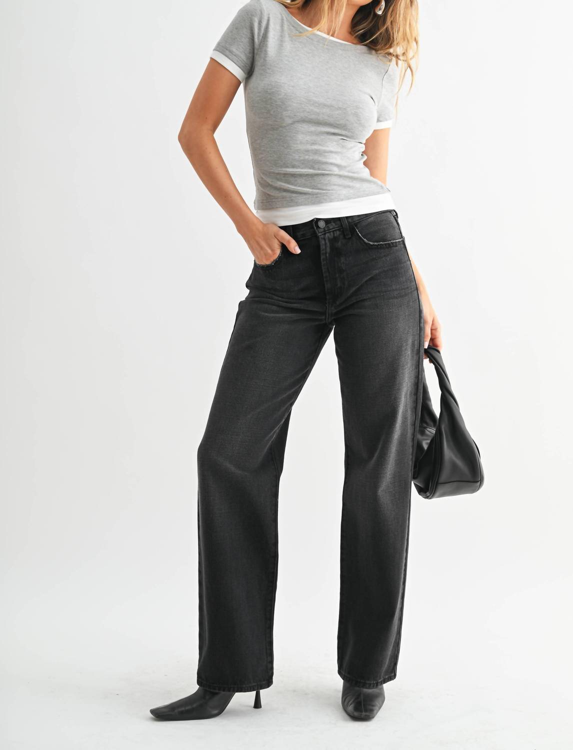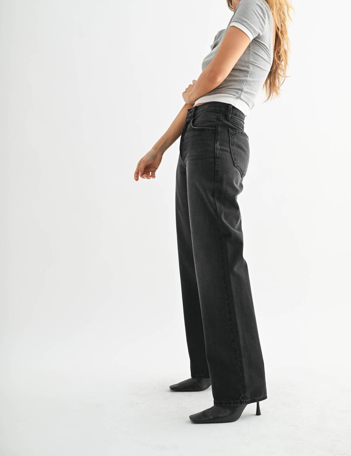 These must-have jeans are fit to perfection. Elevate your wardrobe with the JUST BLACK DENIM Relaxed Straight Jeans, featuring a high-rise silhouette with a 10.5" rise and a 31.5" inseam for a flattering fit. Expertly crafted from 100% cotton, these jeans offer a solid, relaxed fit and straight leg style, making them a comfortable choice for every occasion. Made in the USA with a classic button closure and versatile design, they are perfect for any streetwear trend. Care: Machine wash cold and lay flat to dry for best results. Model is wearing a size 26.