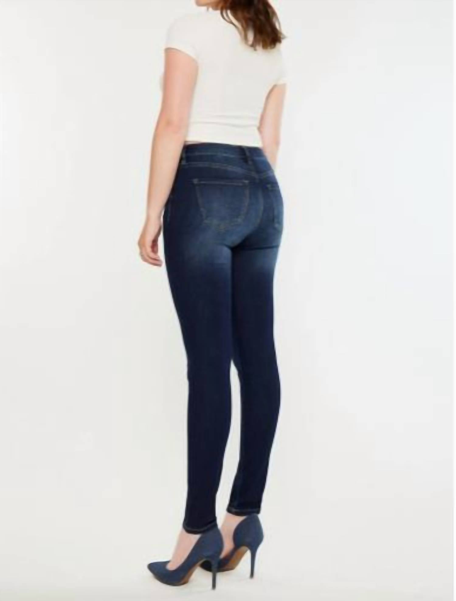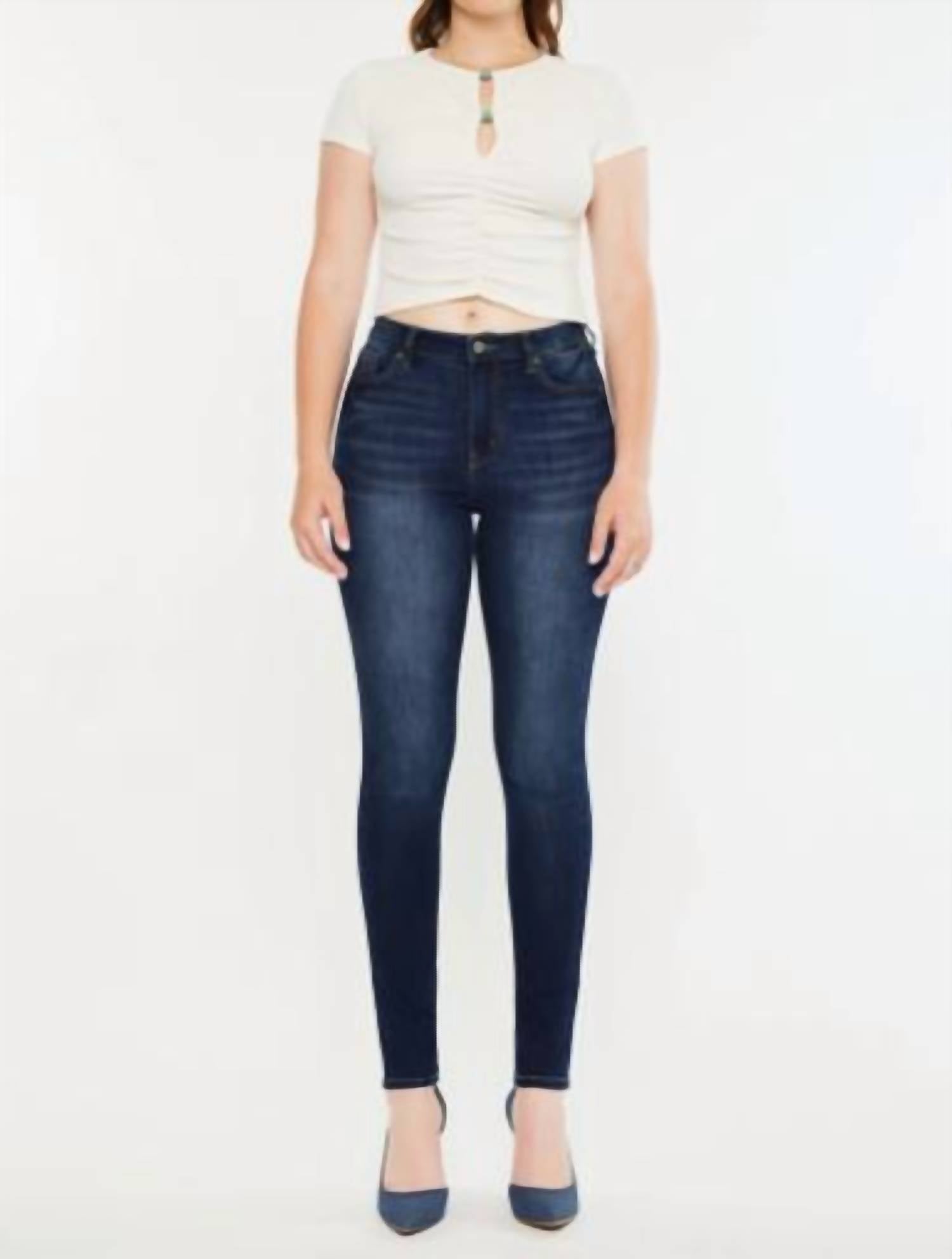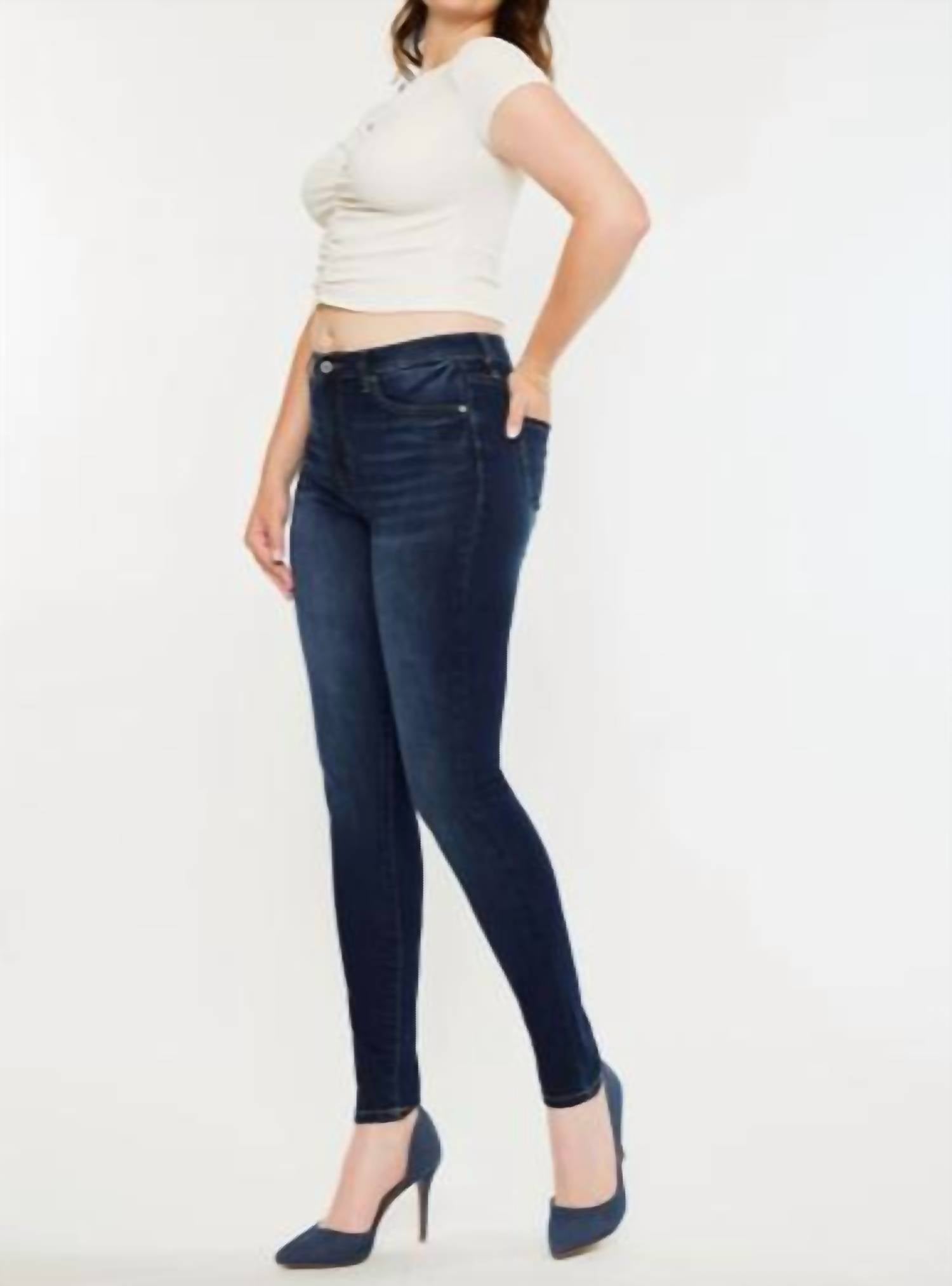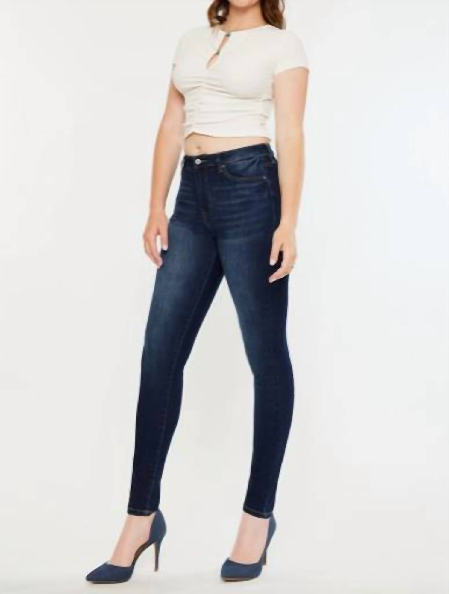A skinny jean that is both flatering and comfortable. We love this style because it works great with boots, or without! Elevate your denim collection with the KanCan Curvy High Rise Skinny Jeans. Crafted with a comfortable blend of 67% Cotton, 25% Polyester, 7% Rayon, and 1% Spandex, these jeans feature a flattering high rise with a 10.5" front rise and a 30" inseam in a size 5/26. The design includes a sleek zip closure and a five-pocket style, all in a classic dark wash that's perfect for summer streetwear. To keep them looking their best, simply machine wash and tumble dry.