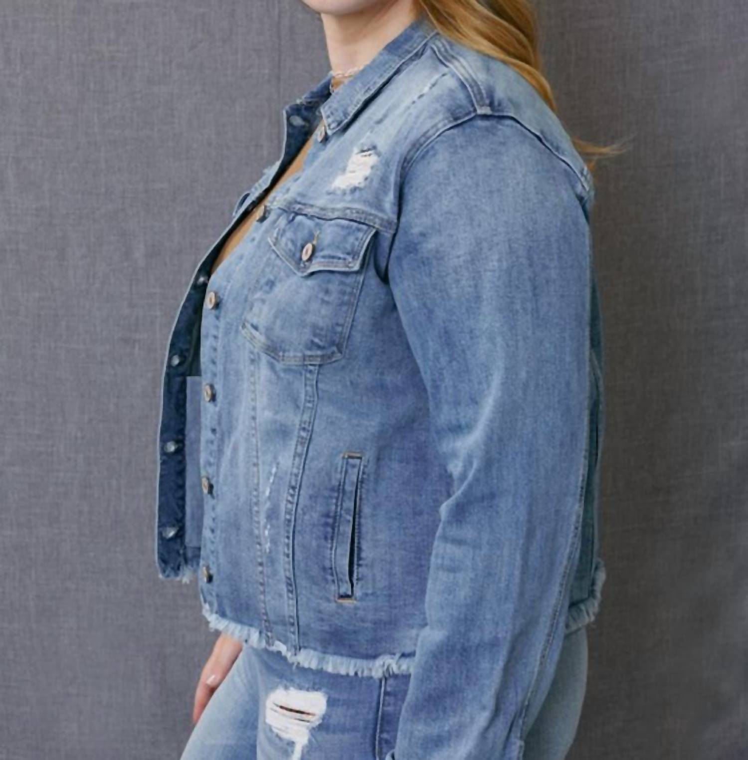 A jacket so versatile you can literally wear it with anything. Introducing the Mona Denim Jacket by KanCan, a must-have for your fall wardrobe designed for vacation getaways. Featuring long sleeves and a classic collar, this jacket is made from a comfortable cotton blend composed of 98% cotton and 2% spandex. It boasts a solid blue pattern, complete with handy pockets and a stylish button closure. Care is simple with machine wash instructions in cold water.