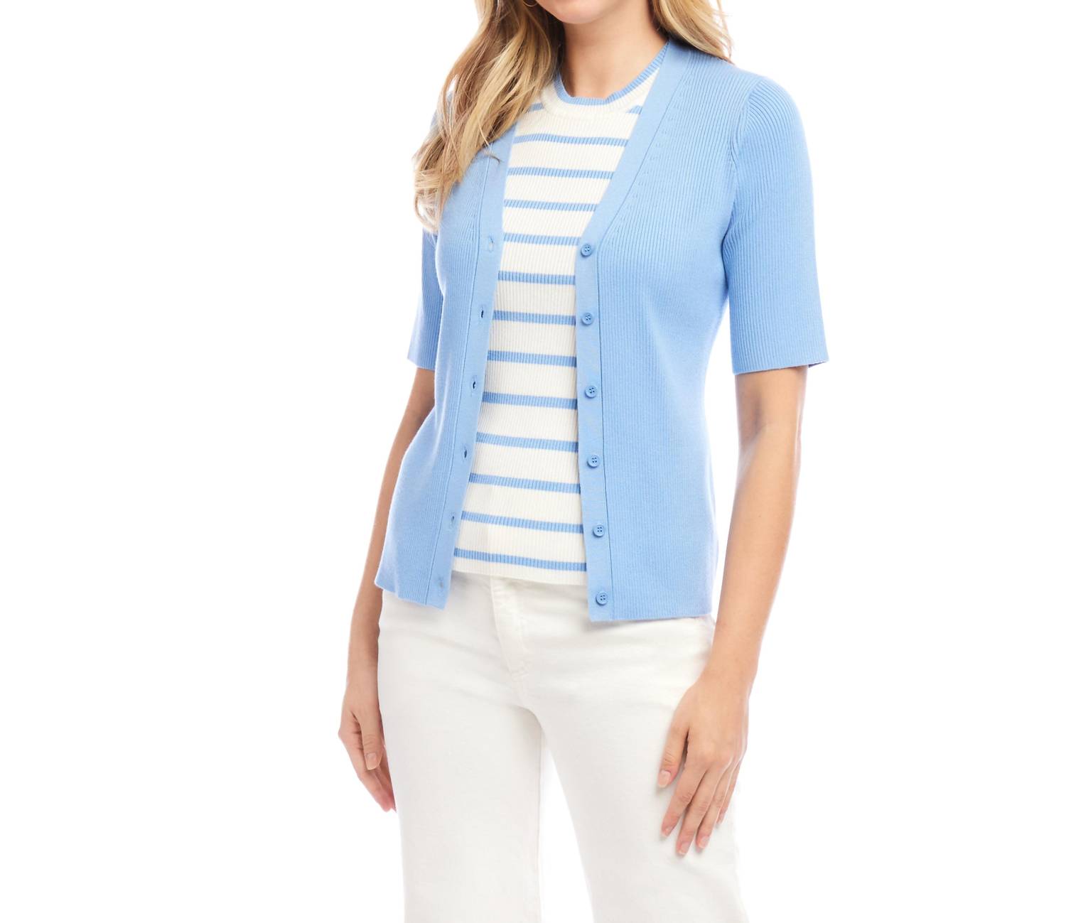 Karen Kane - Short Sleeve Ribbed Cardigan Sweater