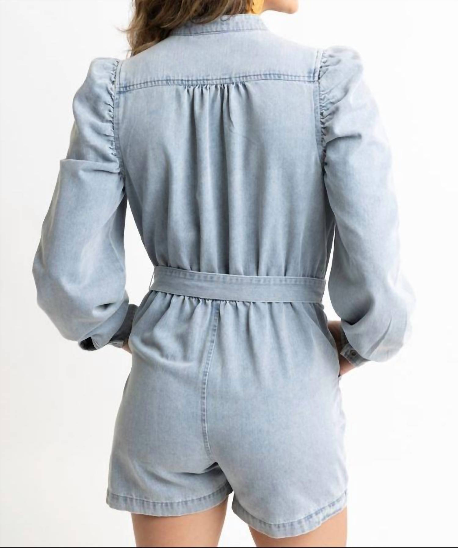 The perfect outfit choice when you you need something quick to throw on and still want to look efforlessly cool. Introducing the Denim Belt Romper by Karlie, an online exclusive perfect for those sunny vacation days. This elegant blue romper boasts playful puff long sleeves and a button-down front with hidden, functioning buttons for a sleek look. The denim material and removable belt sash add versatility and style, allowing you to transition seamlessly from day to night. The fit is true to size, ensuring comfort and confidence with every wear.