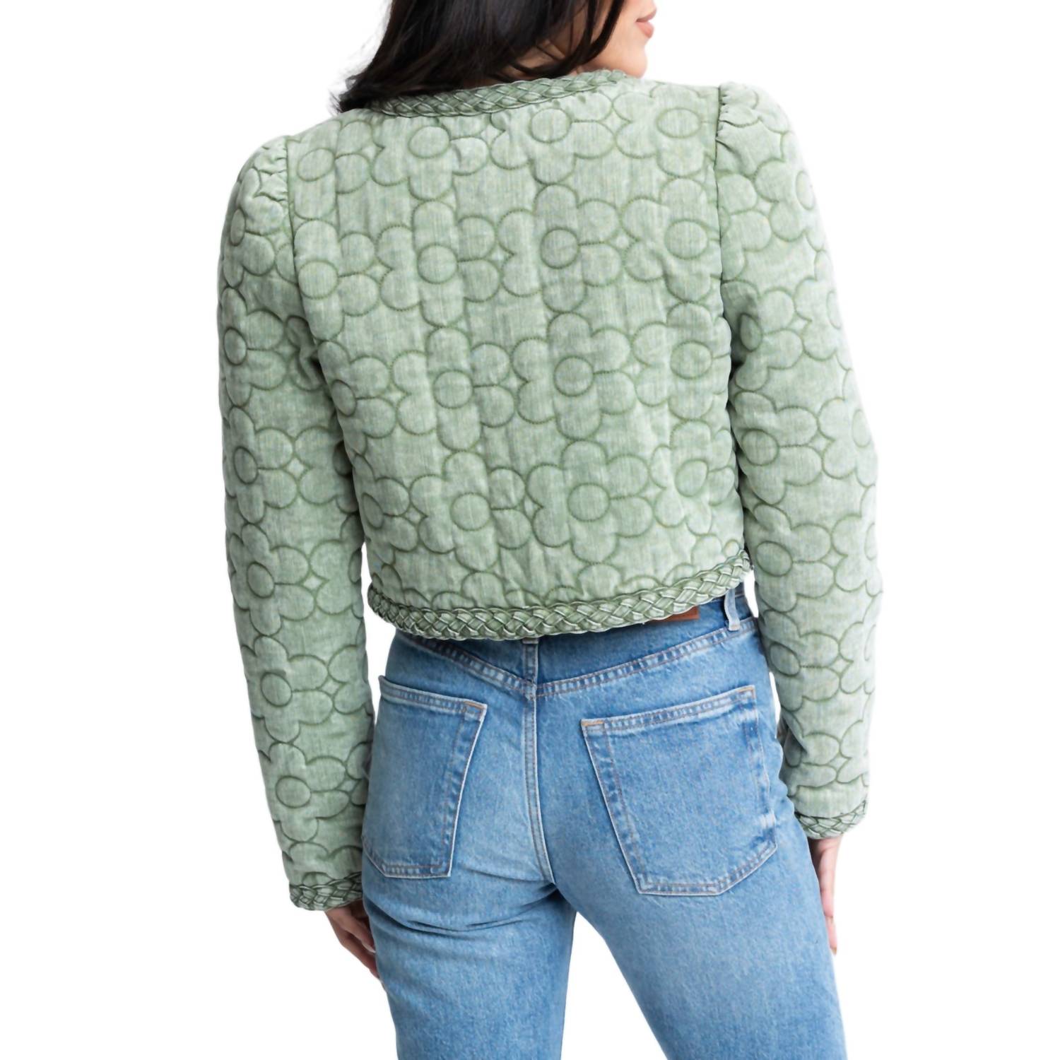 A casual yet cool jacket that every closset needs. This sophisticated jacket is meticulously crafted with a modern quilted texture, featuring an intricate floral motif and refined braided trim for a multidimensional, artisanal finish. The design is distinguished by its structured, cropped silhouette, offering a polished and architectural profile that serves as a versatile layering piece. Engineered with a lightweight construction to ensure a fluid drape and comfortable wear, the garment balances heritage-inspired aesthetics with contemporary tailoring. Combining tactile depth with a streamlined fit, this jacket provides a foundational staple for a curated wardrobe, transitioning effortlessly across professional and social settings.