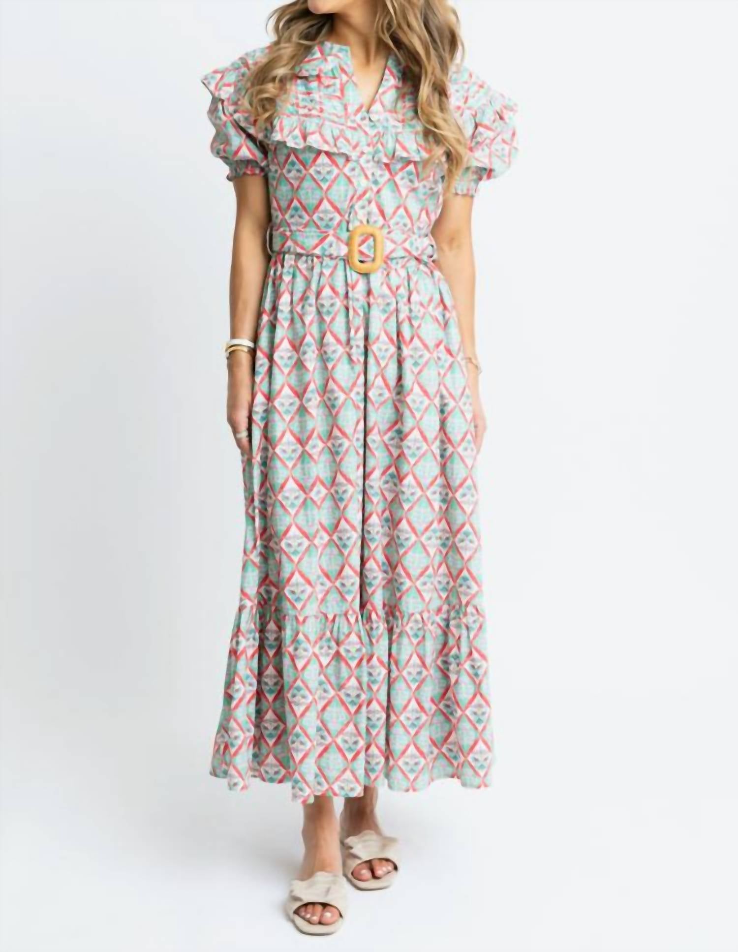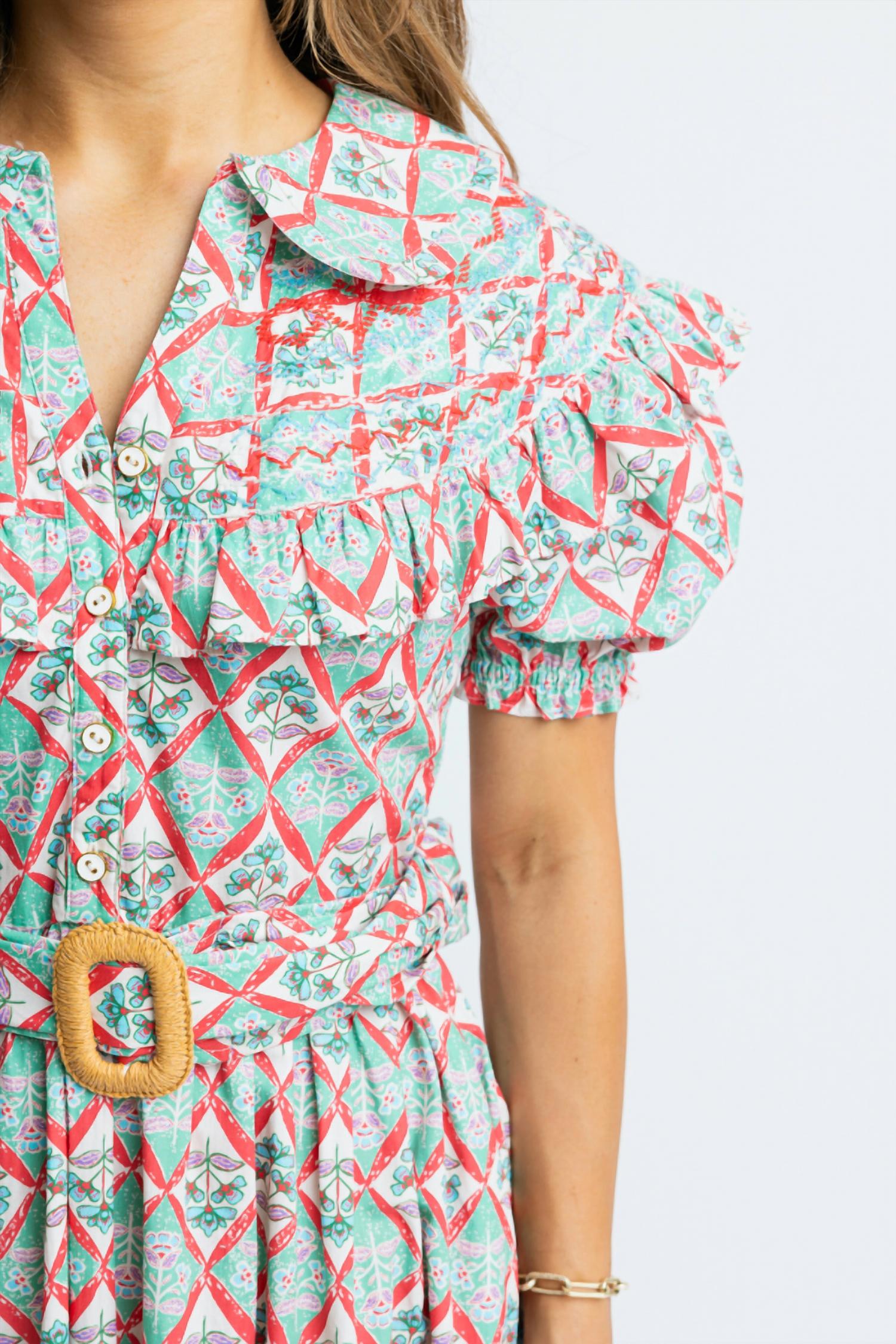 Who doesn't love a good maxi dress? This one you'll be reaching for season after season. Introducing the Paris Floral Peter Pan Belted Maxi Dress by Karlie, a green, patterned masterpiece perfect for a Boho Chic summer vacation. Designed with short sleeves and an A-line silhouette, this maxi dress features a classic collar neckline and comes with a button closure. Crafted from breathable cotton, it offers the functionality of pockets for everyday convenience. Care instructions: Hand wash and line dry for best results.