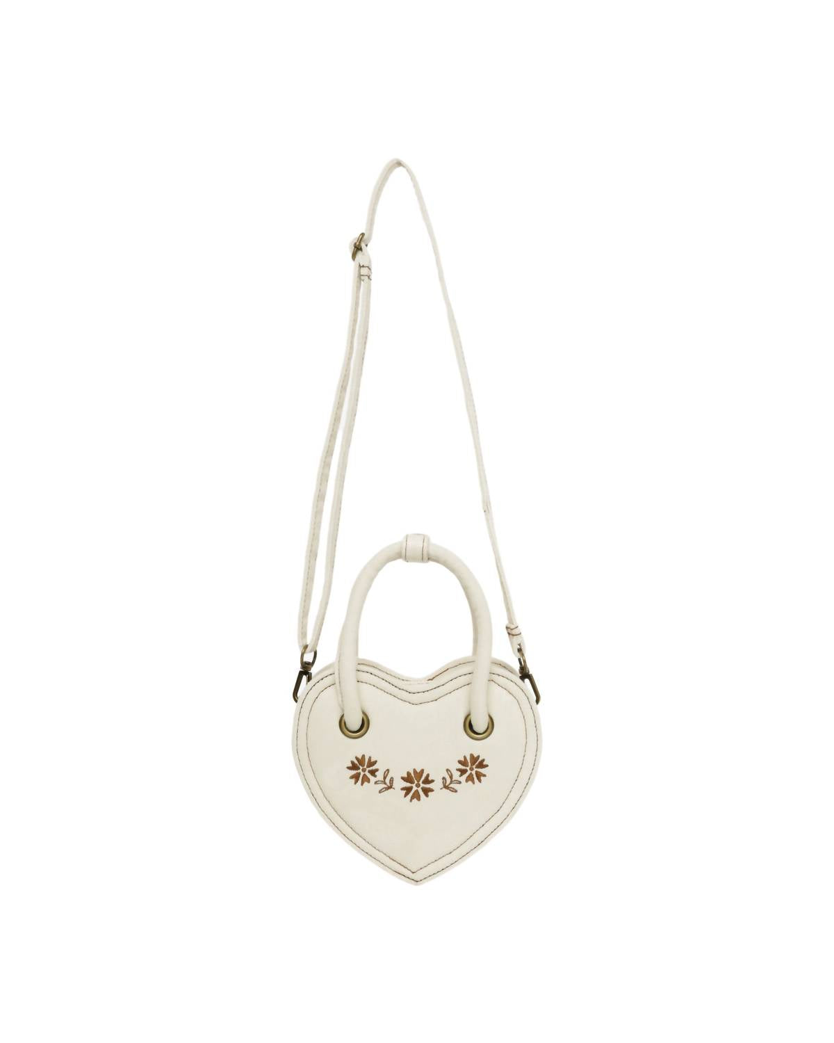 Introduce your little girl to style with the Rylee + Cru Heart Purse Bag, featuring an enchanting heart shape in a natural color. Made from 100% cotton, this charming purse is both gentle and durable. Complete with a delicate floral detail and adjustable strap, it's perfect for storing treasures while complementing any outfit. This adorable accessory promises to add a whimsical touch to her look.