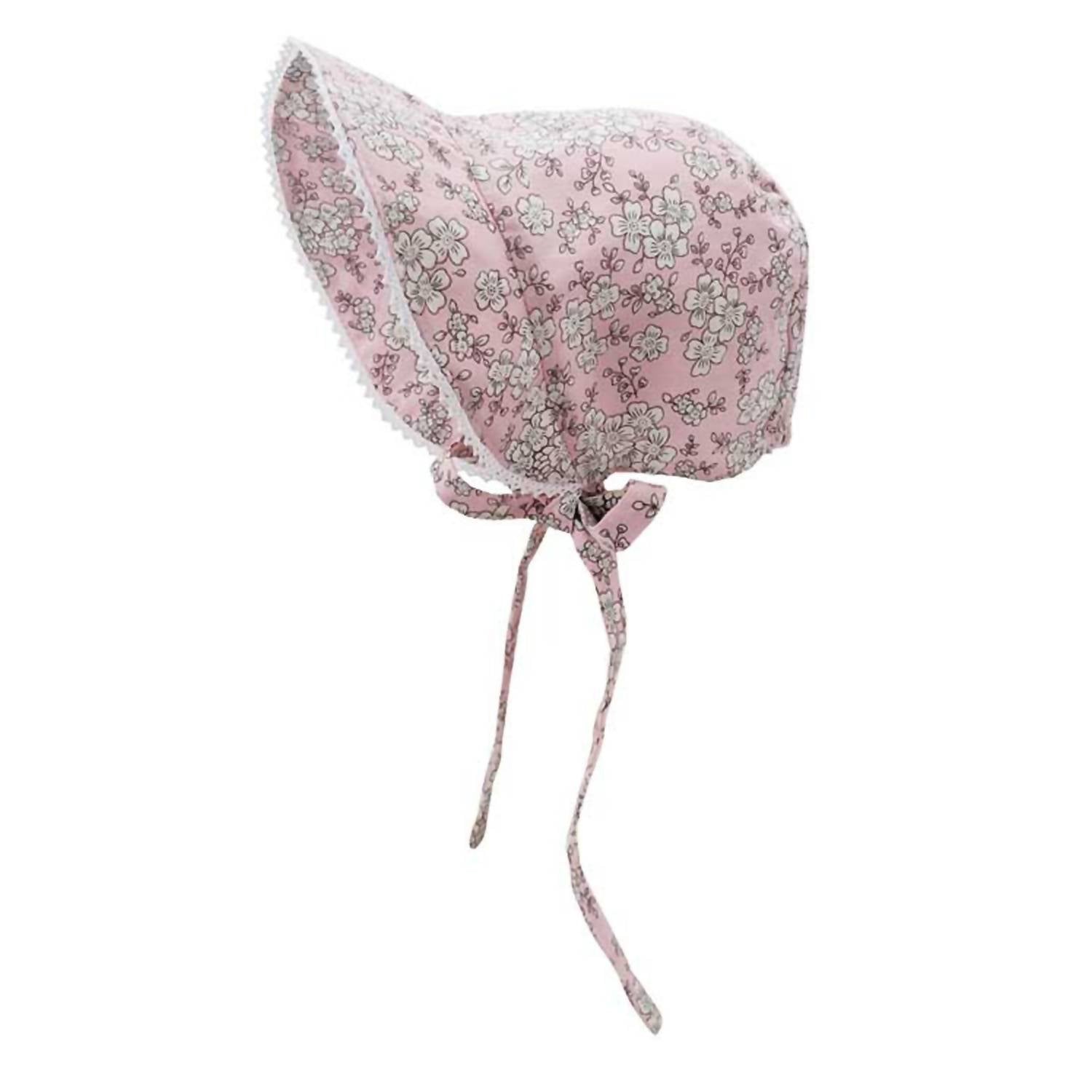 Protect your little one with the Huggalugs Cherry Blossom Sunbonnet, a charming hat that combines style and safety. Designed with a delightful pink and gray floral pattern, this bonnet features a soft cotton composition and offers UPF 25+ protection, ensuring your baby girl's skin stays safe. The bonnet has a sweet lace-trimmed brim and ties that can be adjusted for a secure fit, either at the center or to the side. Originating from China, this sunbonnet is the perfect accessory for sunny days. 100% Cotton.