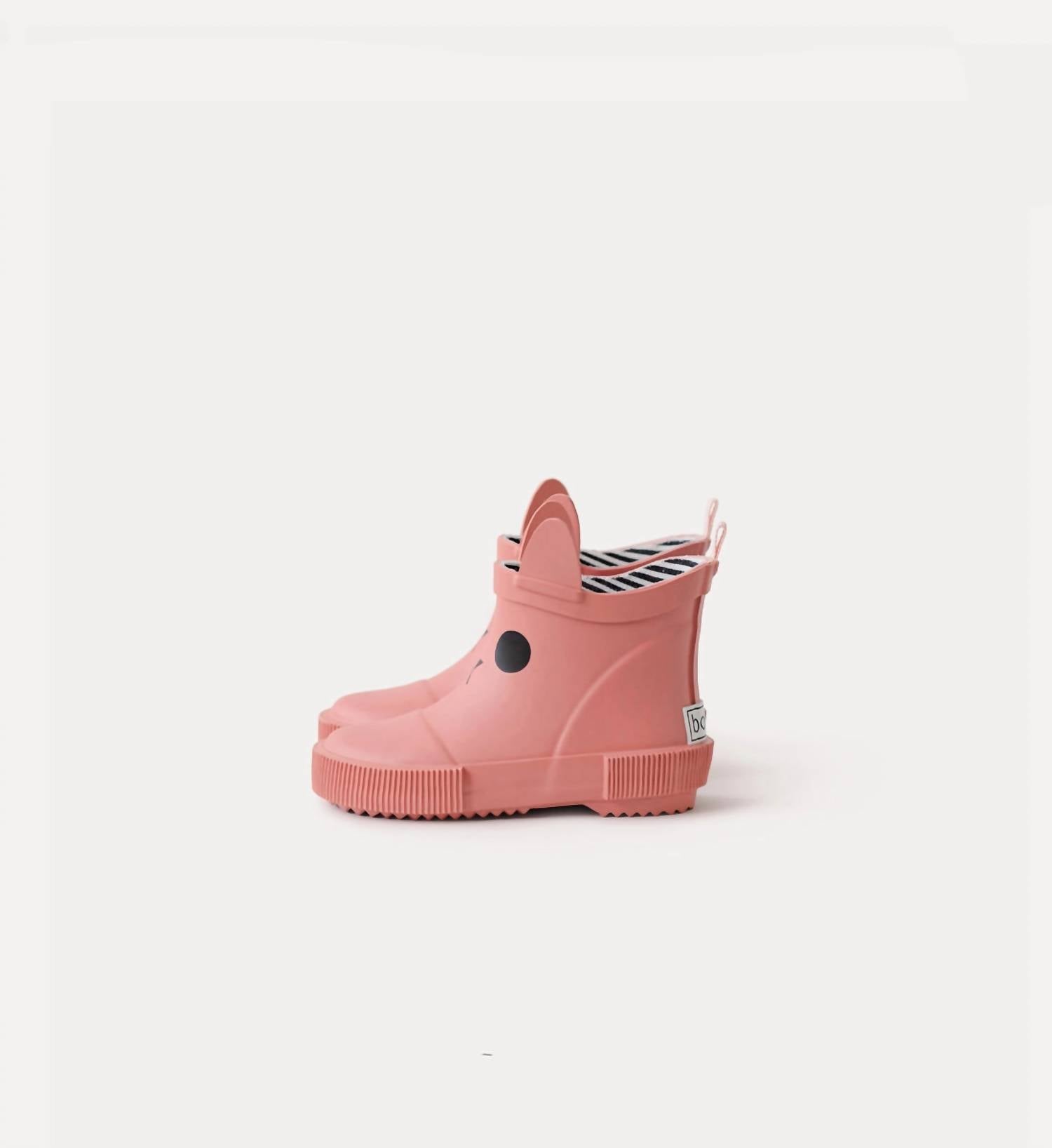Step up your child's wardrobe with the Girl's Kerran Boots by Boxbo in a delightful pink hue, designed around whimsical themes like dinosaurs and cats. This mid-low style features a round toe, offering flexible and lightweight wear perfect for play. Made from 100% natural rubber with a comfortable EVA foam insole and a soft, foldable, non-slip rubber outsole, these boots ensure both comfort and safety. The inner cotton lining adds a snug fit, and the semi-bright finish gives a charming touch to any outfit.