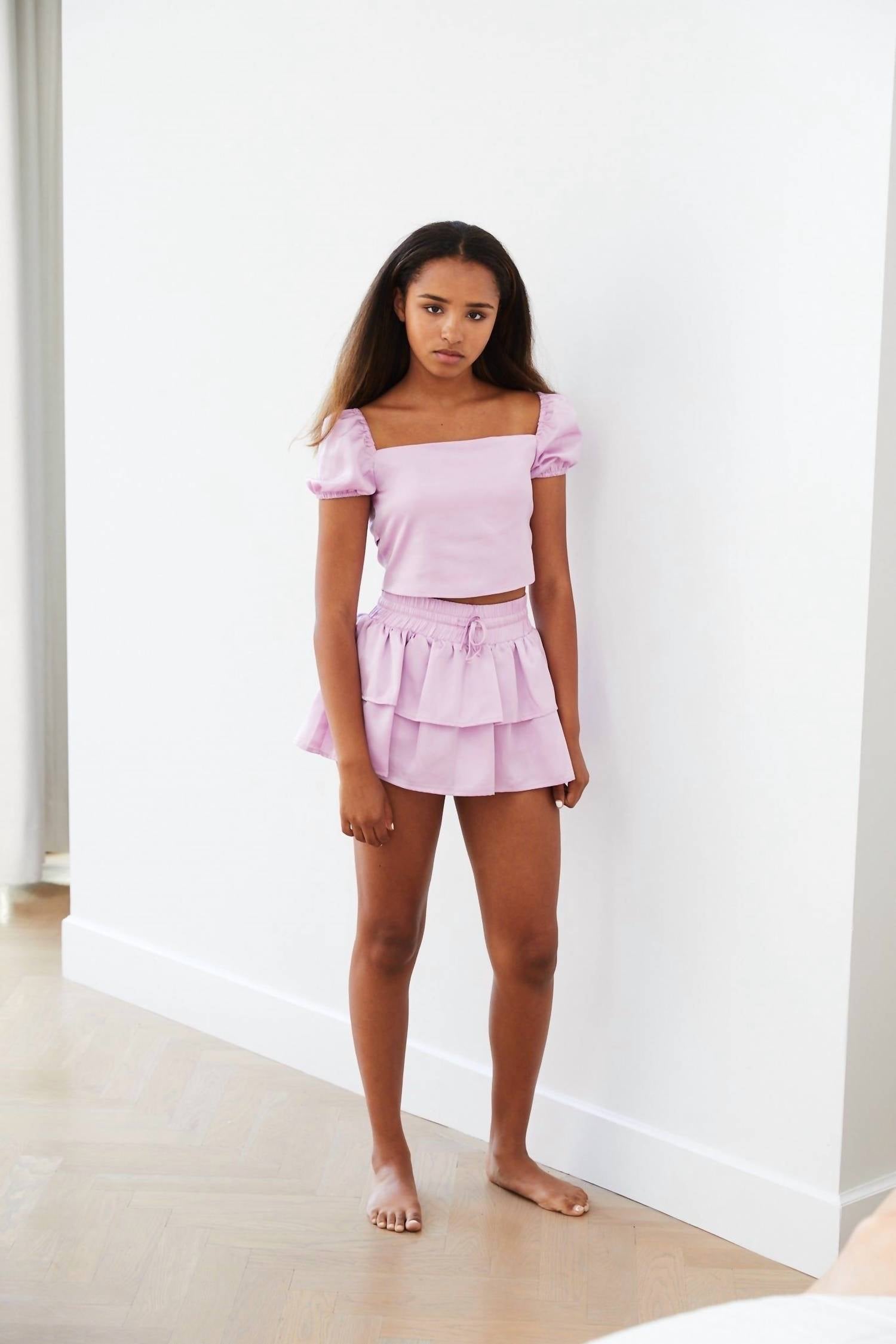 Charming piece perfect for dressing up your little one's wardrobe. Crafted in a luxurious soft satin. Features a unique tie-back detail that adds a playful and stylish touch to any occasion. Seasonally on-trend with a boho-chic vibe. Ideal for spring festivities and holiday parties. Hand wash only.