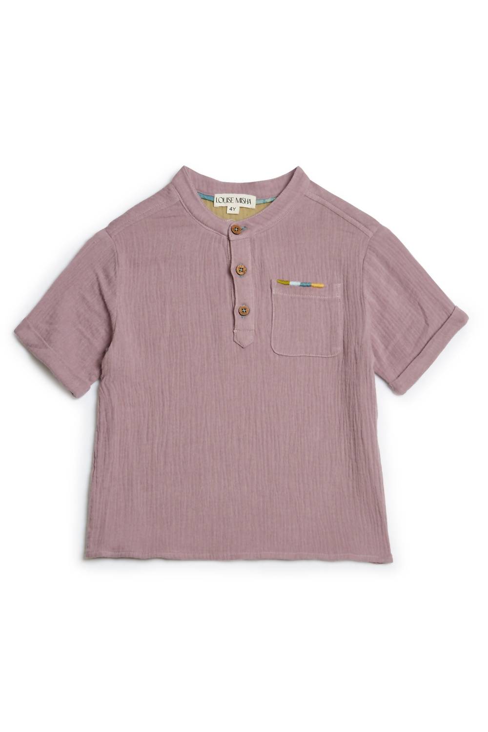 This tee, crafted from 100% organic cotton, offers short sleeves and features a textured design along with a practical front patch pocket. The rounded collar adds a touch of sophistication, and the garment easily pulls on with a placket for convenience. Perfect for casual outings, this shirt is a must-have for any stylish young girl.